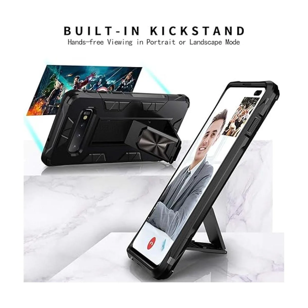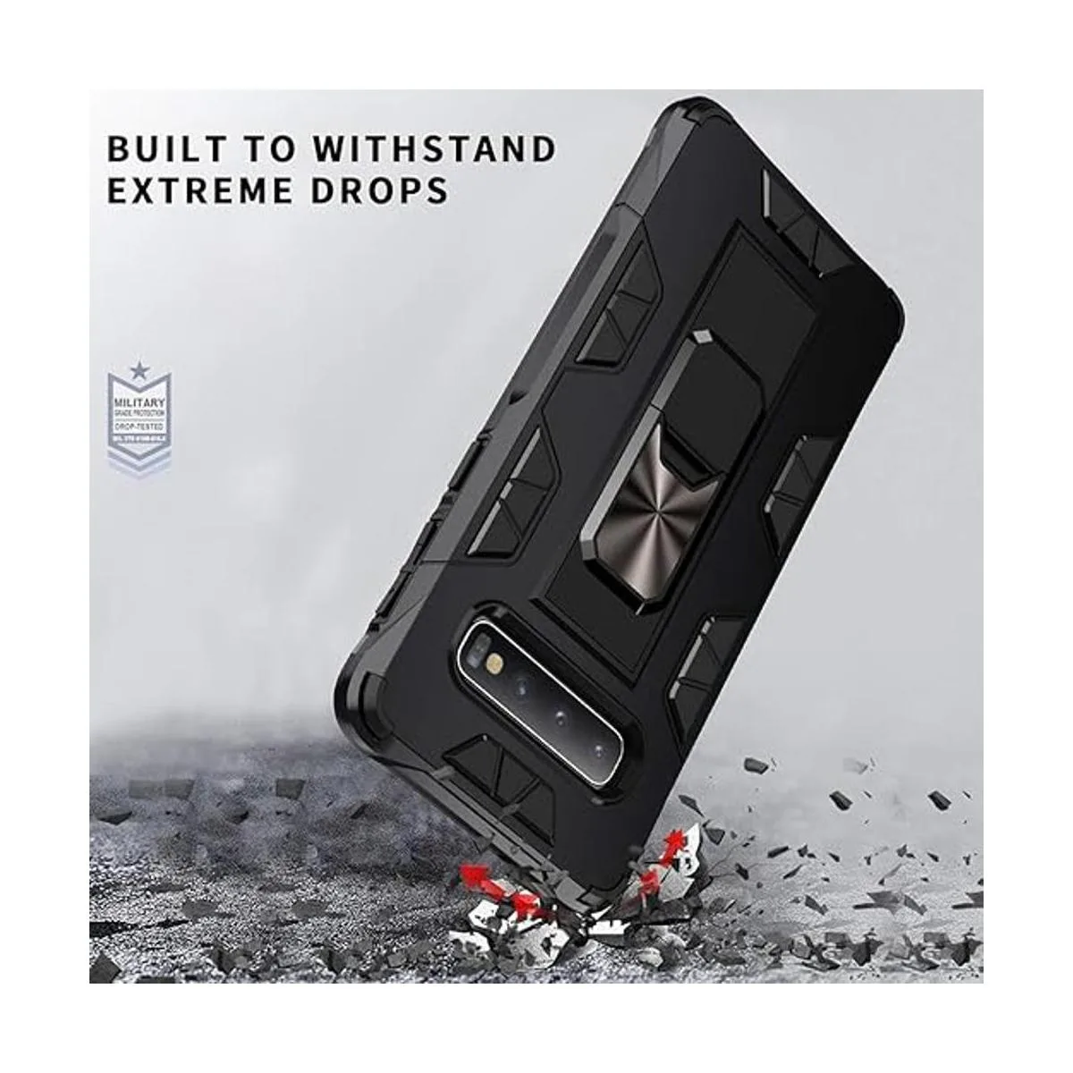 Función: a prueba de caídas, golpes y polvo, especialmente cuatro esquinas reforzadas que proporcionan una protección extremadamente fuerte. Excelente para actividades al aire libre. Funda a prueba de golpes para Samsung Galaxy S10 Plus.