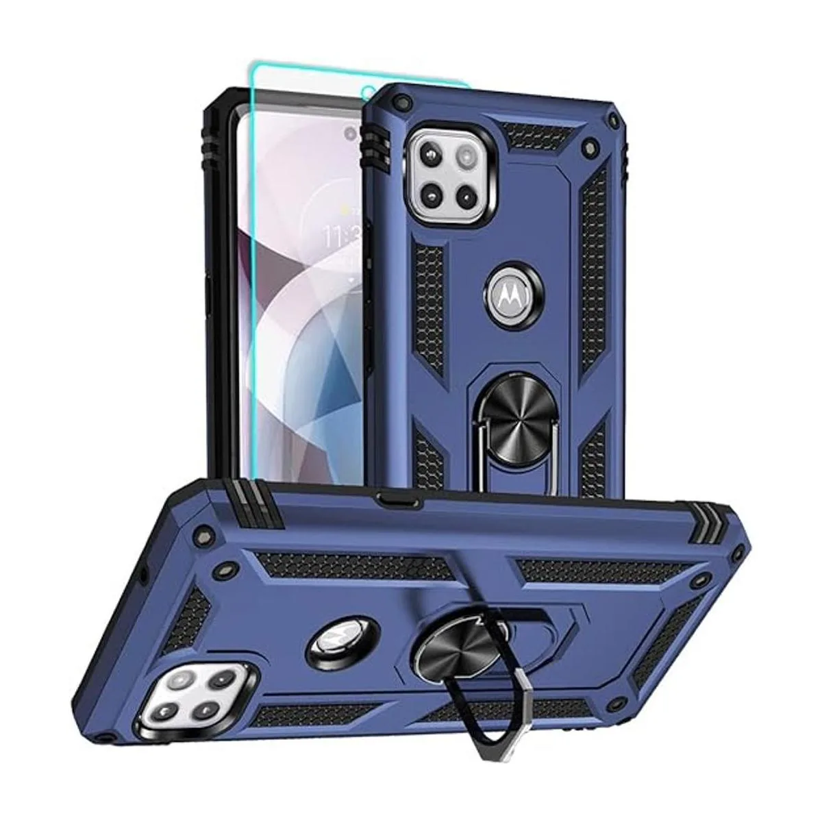 Funda para teléfono Motorola One 5G Ace, funda para Moto One 5G Ace con protector de pantalla HD, grado militar de 16 pies, prueba de caídas, funda protectora de anillo a prueba de golpes para Motorola One 5G UW Ace, azul