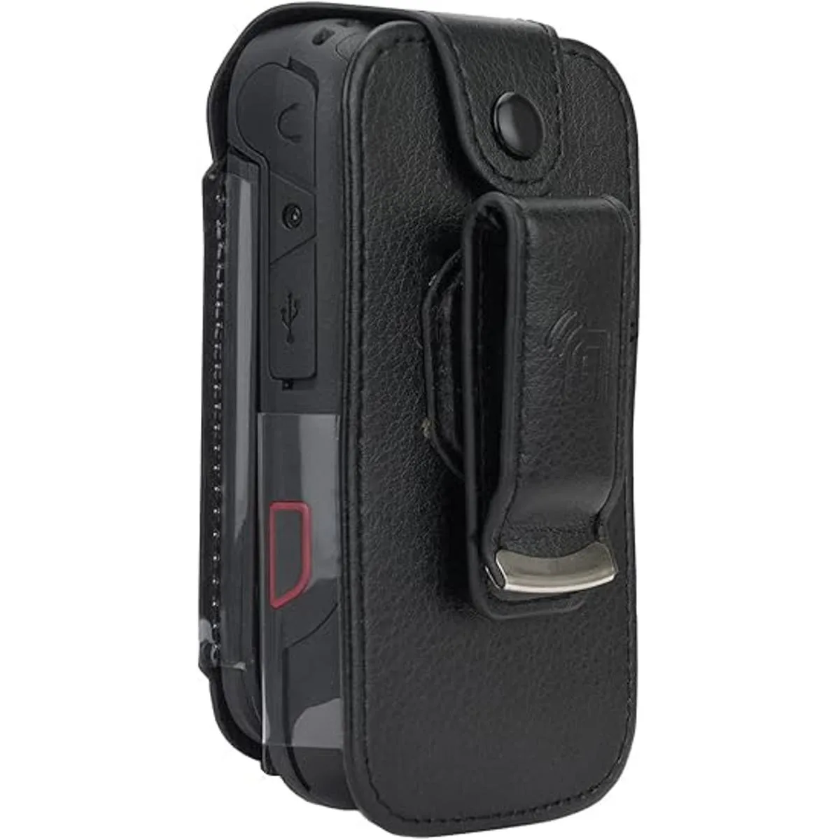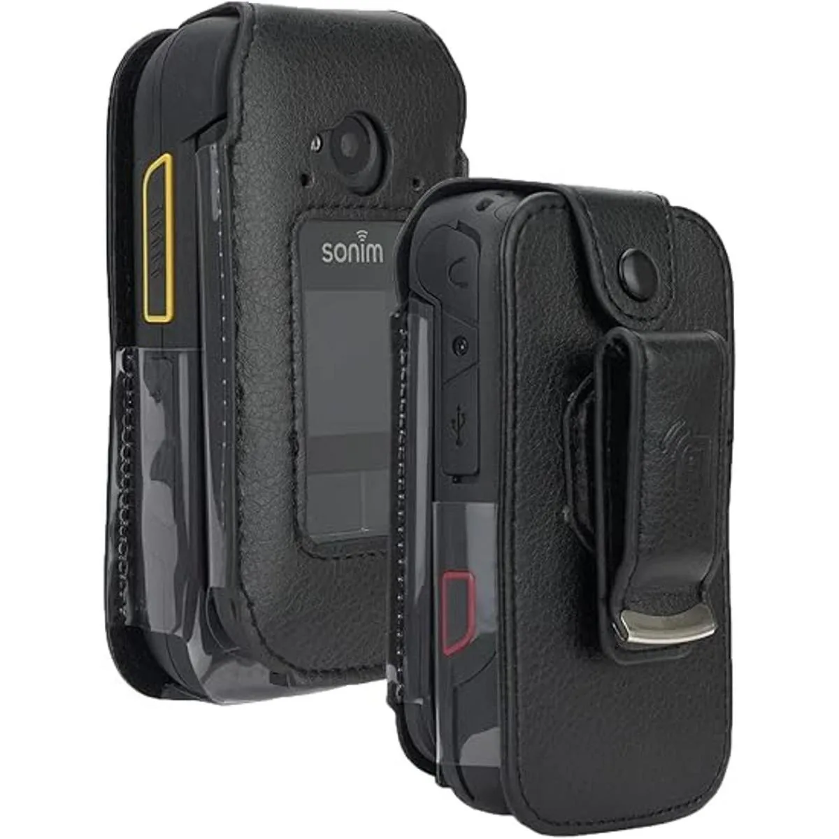 Funda para teléfono móvil Sonim XP3 Plus Flip Phone, Nakedcellphone Cuero vegano Negro Funda con Protección de Pantalla Integrada y Clip de Cinturón de Metal para XP3plus XP3900