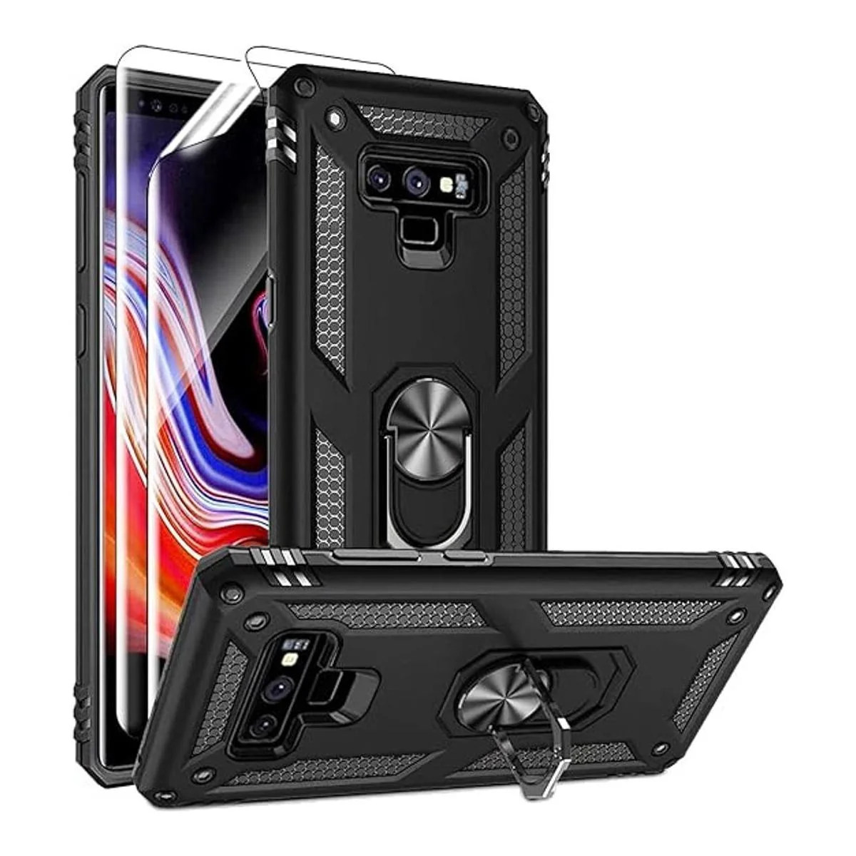 Funda para teléfono Samsung Note 9, funda para Galaxy Note 9 con protector de pantalla PET 3D, soporte de anillo de grado militar Androgate para montaje de automóvil de 15 pies, funda a prueba de caídas a prueba de golpes para Galaxy Note 9, color negro