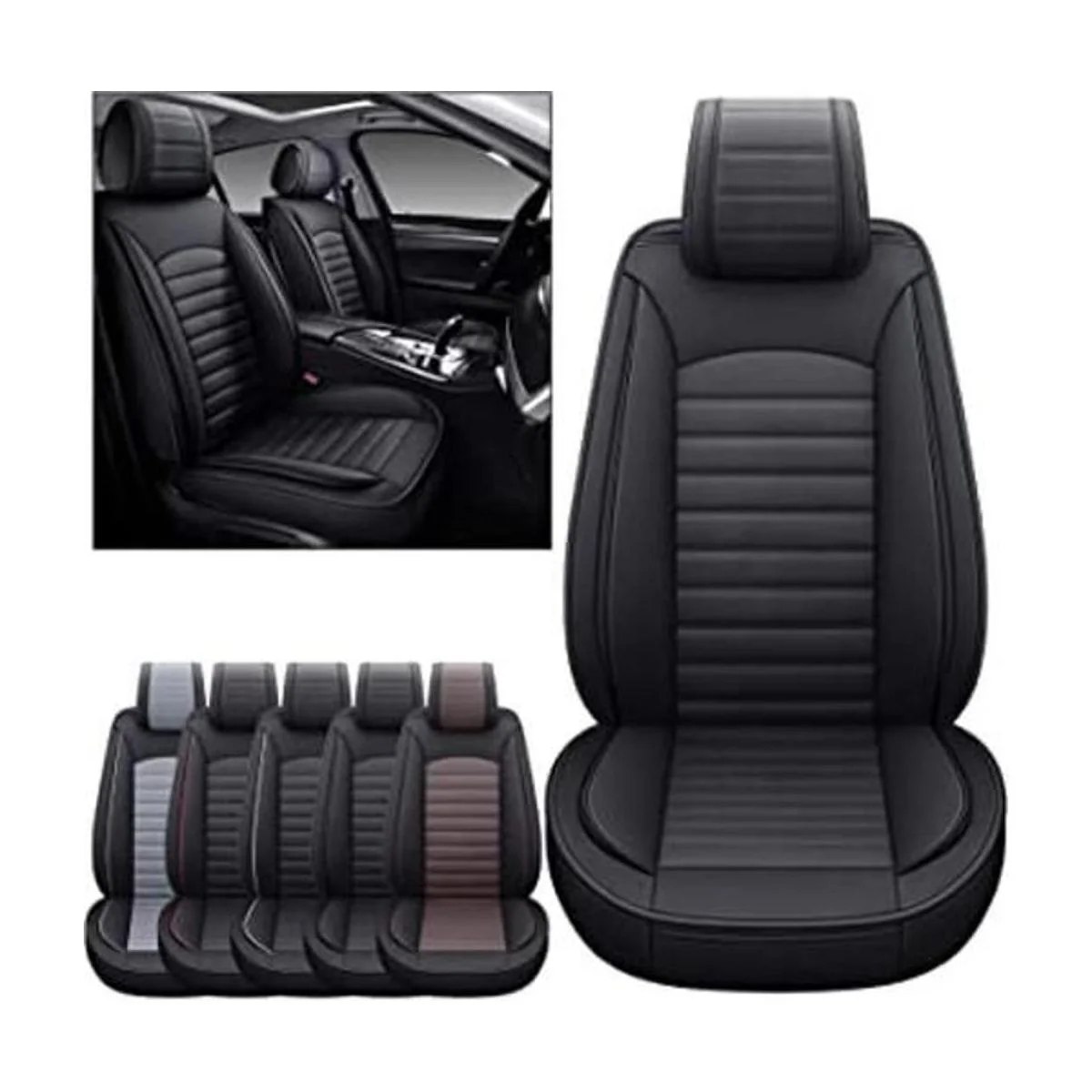 Fundas de asiento de automóvil con cuero impermeable, funda de cojín para automóvil, VUD, camioneta, ajuste universal para la mayoría de automóviles Negro, 2 piezas para asientos delanteros