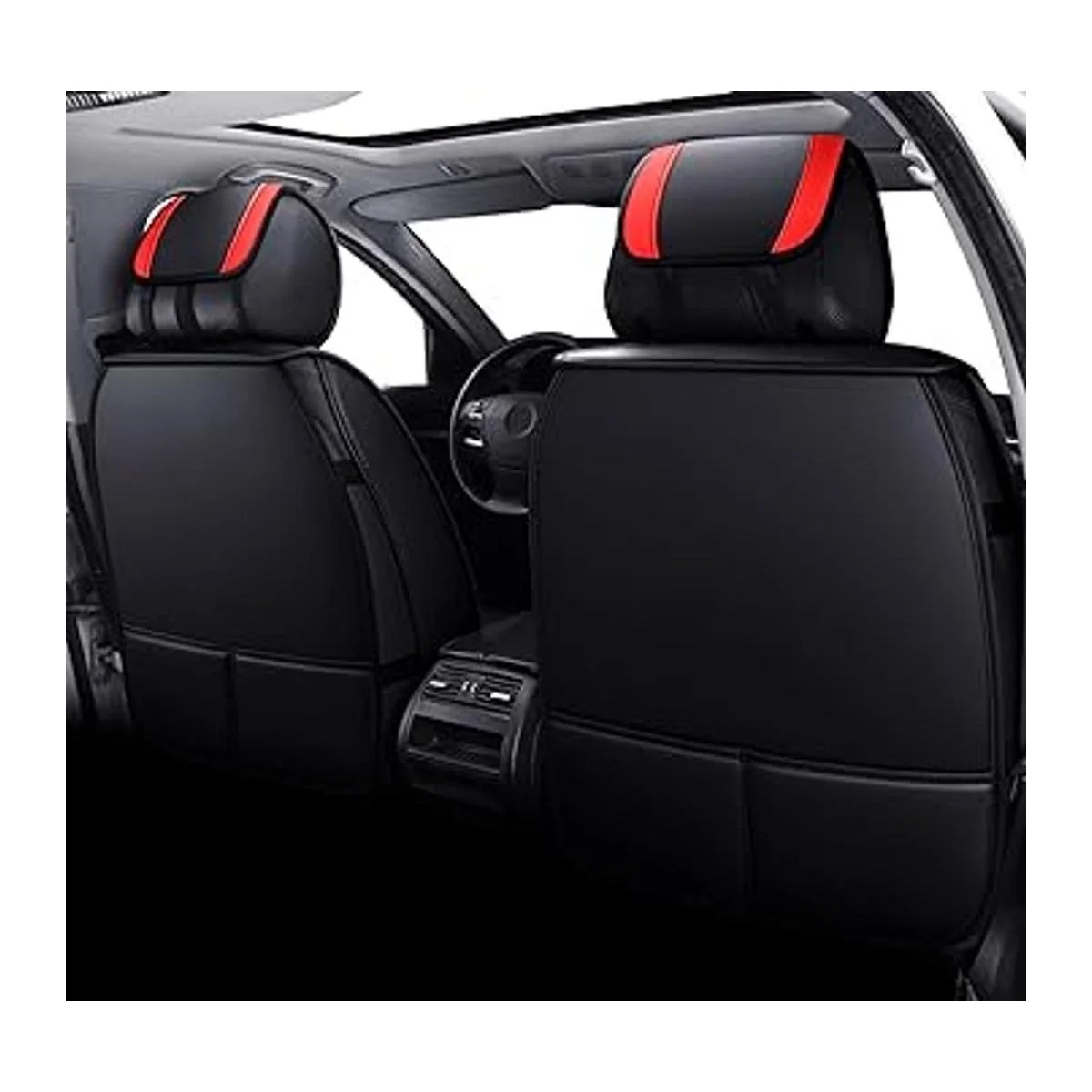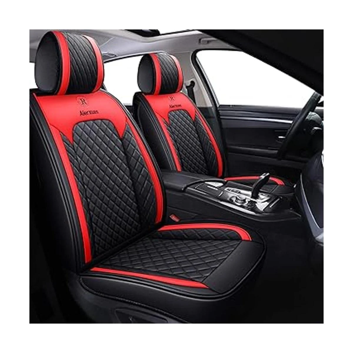 Fundas de asiento de coche para asientos delanteros solo de cuero impermeable asiento universal para Rav4 Kia Sorento Pilot Hrv Ridgeline Odyssey Chr Ford Ranger Edge 2 piezas delanteras, negro y rojo