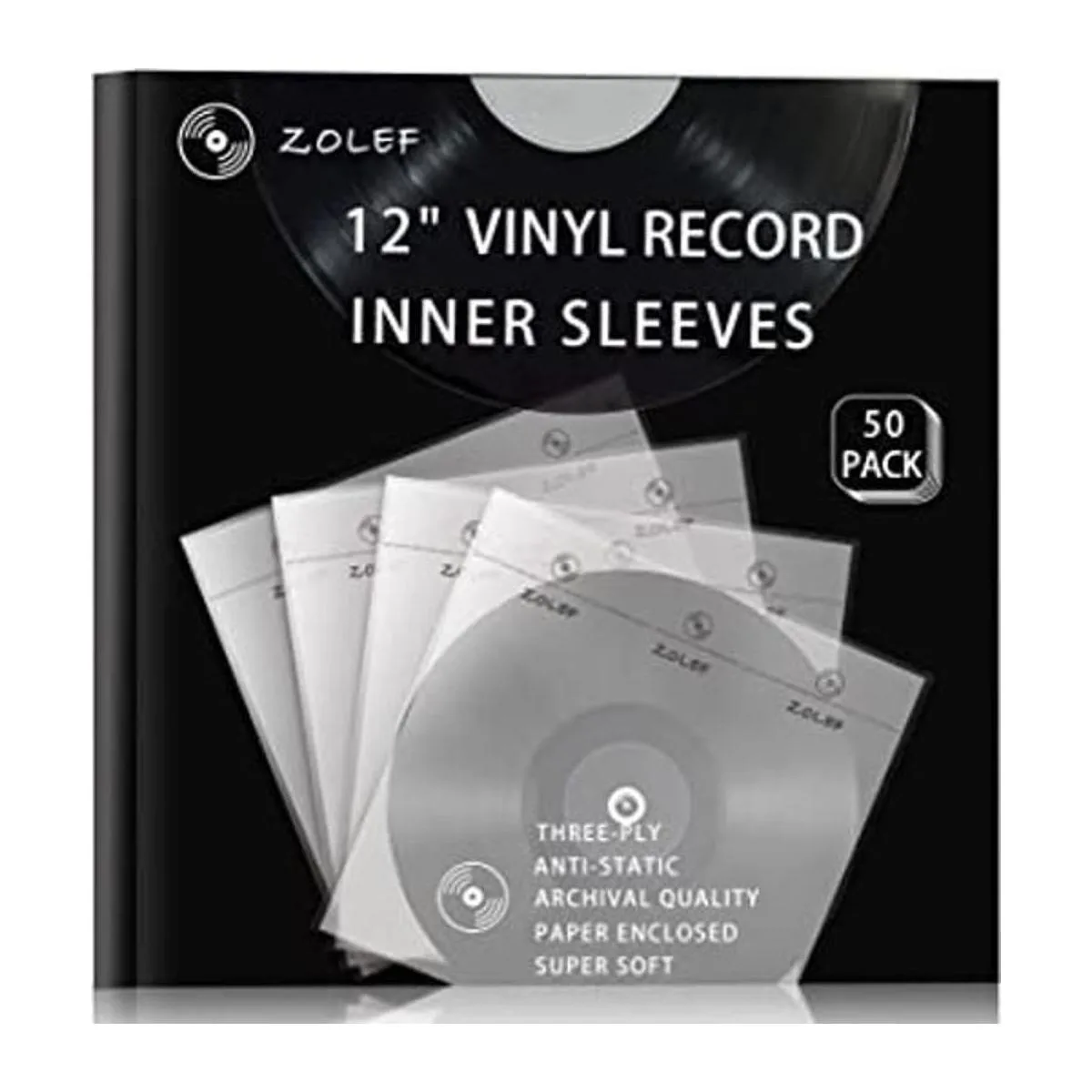 Fundas interiores de vinilo de 12 pulgadas, paquete de 50 unidades, 3 capas antiestáticas suaves LP funda interior con papel de arroz cerrado para protección de discos de 33 rpm