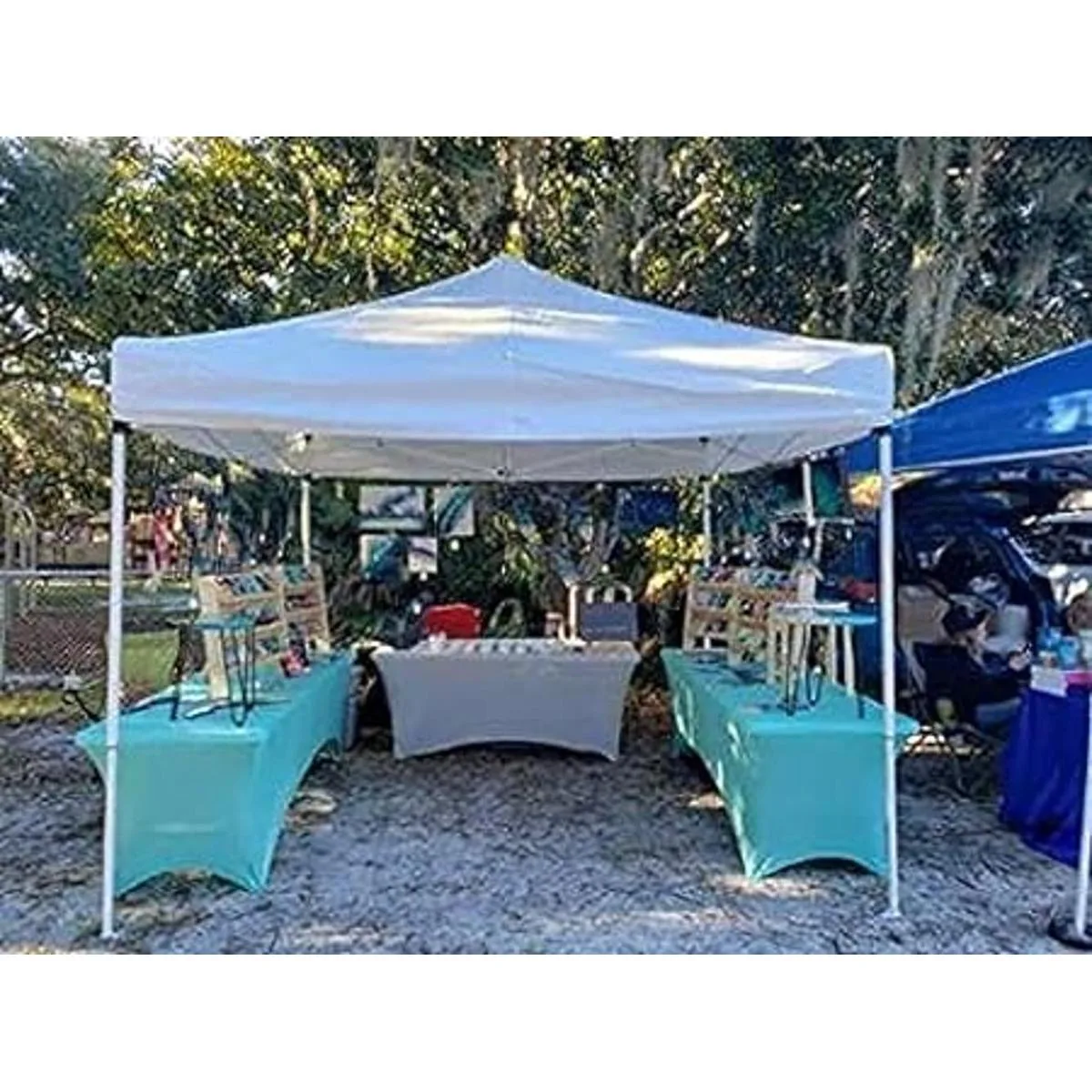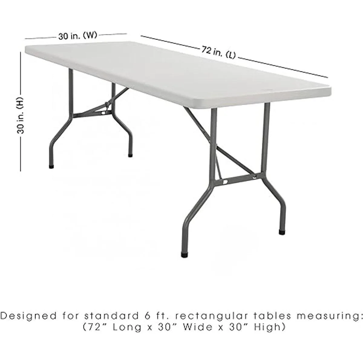 Diseñado para mesas de 72 pulgadas o 6 pies de largo, 30 pulgadas de ancho, 30 pulgadas de alto. Cuenta con bolsillos profundos de lona para los pies, duraderos, no requieren planchado y se pueden lavar innumerables veces.