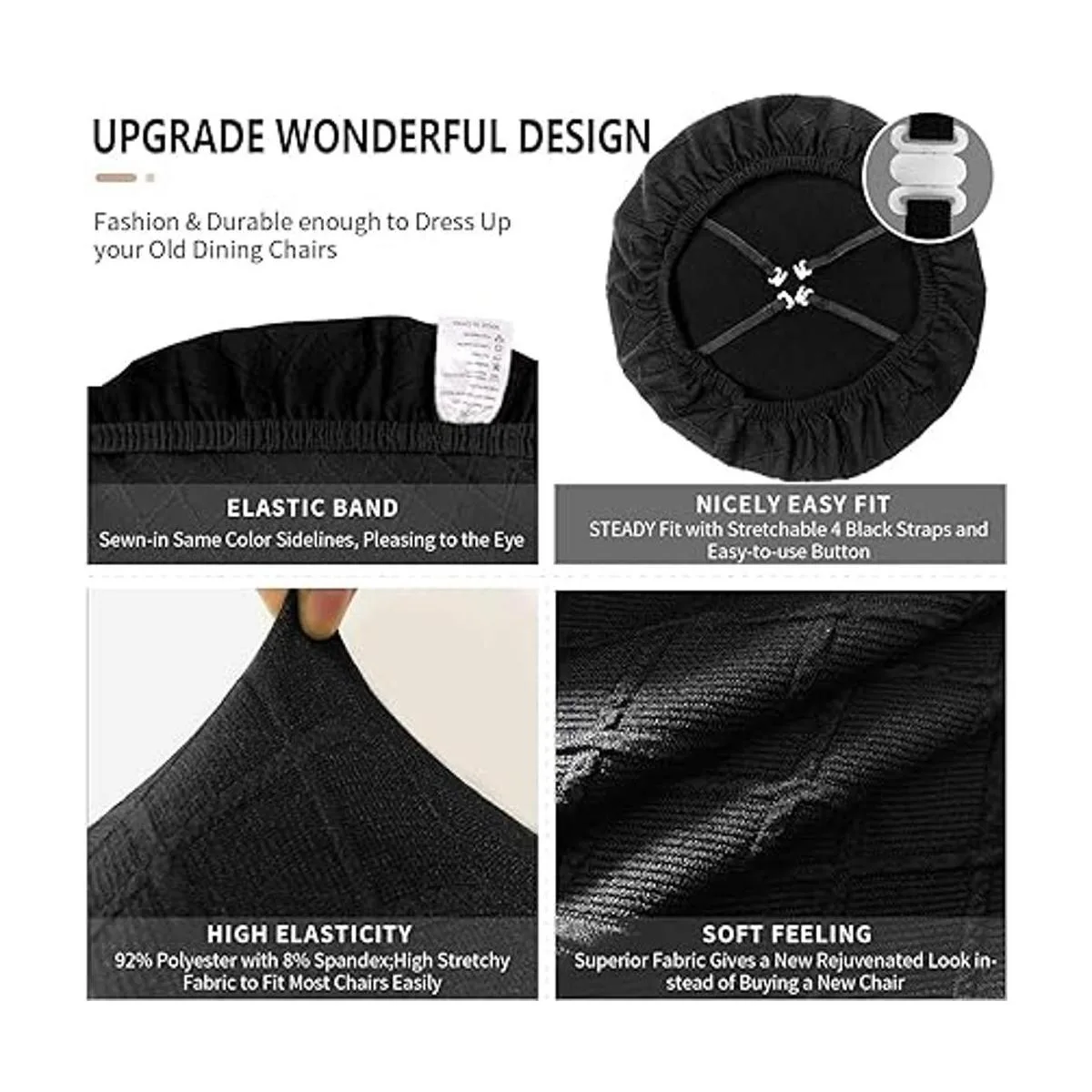 Diseño mejorado con lazo y botón de alta elasticidad: 4 correas elásticas y botón fácil de usar que asegura las fundas de silla en cuestión de segundos, lo que las mantendrá extremadamente estable y bien metidas, no se desliza.