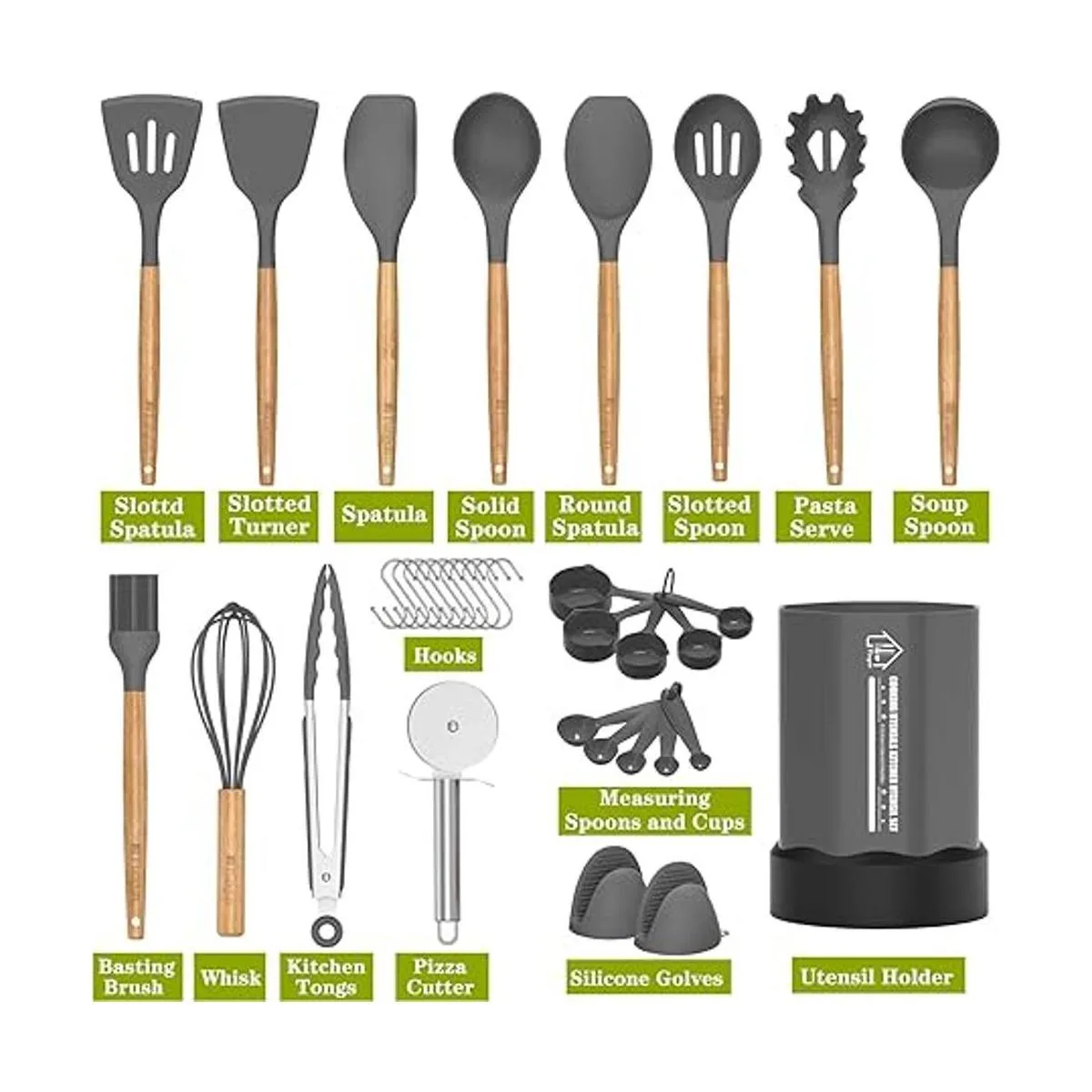 Fungun Juego de utensilios de cocina de silicón, juego de utensilios de cocina de 26 piezas con soporte para utensilios, utensilios de cocina antiadherentes, sin BPA y no tóxicos, herramientas de cocina de regalo