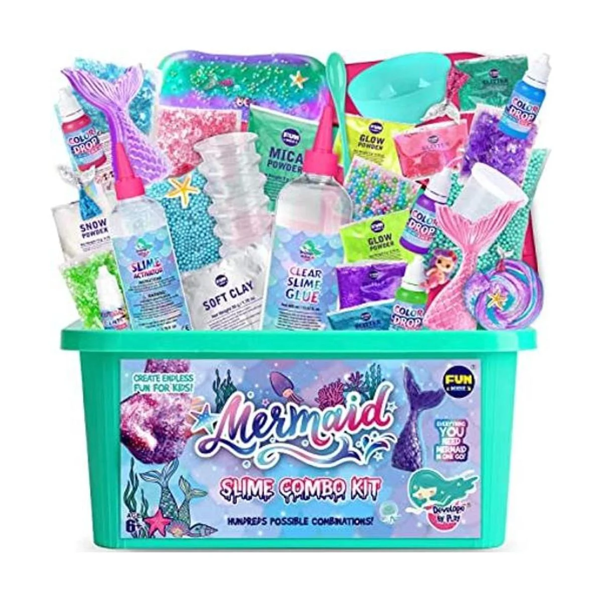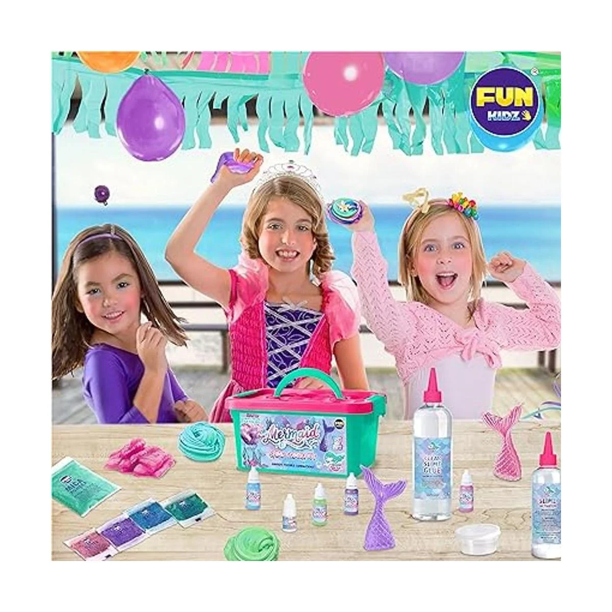 FunKidz Kit de limo de sirena para niñas, kit de fabricación de limo brillante para niños de 8 a 10 años, 10 a 12 años, regalos de sirena de limo esponjoso con purpurina