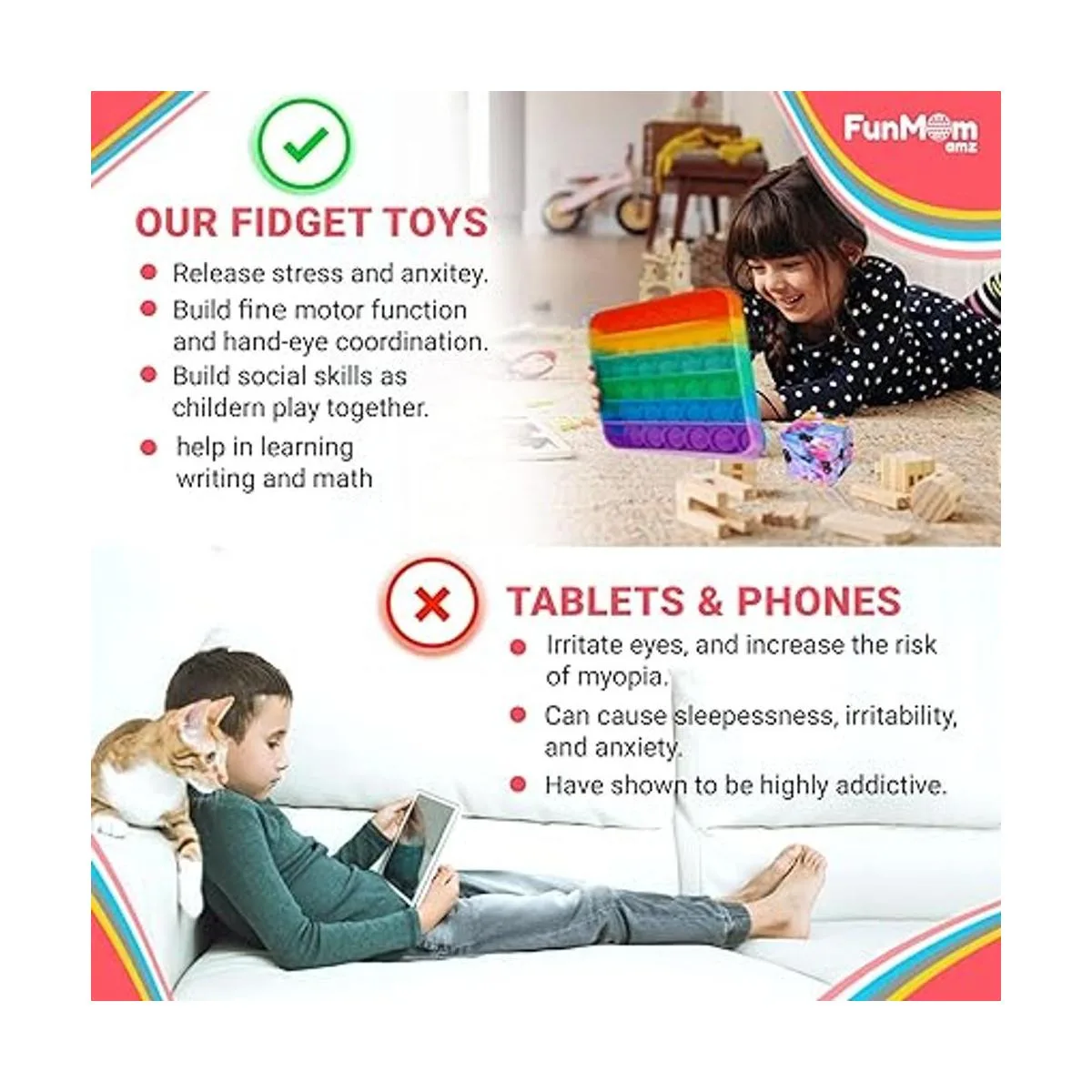Divertidos juguetes educativos para niños: la gran ventaja de este paquete de juguetes antiestrés para niños es que también contiene juguetes de aprendizaje tanto para matemáticas como para escribir. Esto crea un juego experimentencial y divertido para niños y adultos por igual con el juguete de presionar y el juguete de tablero magnético.