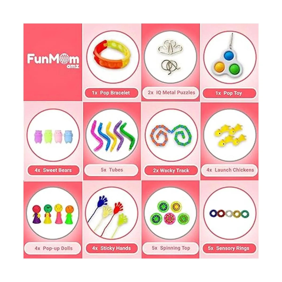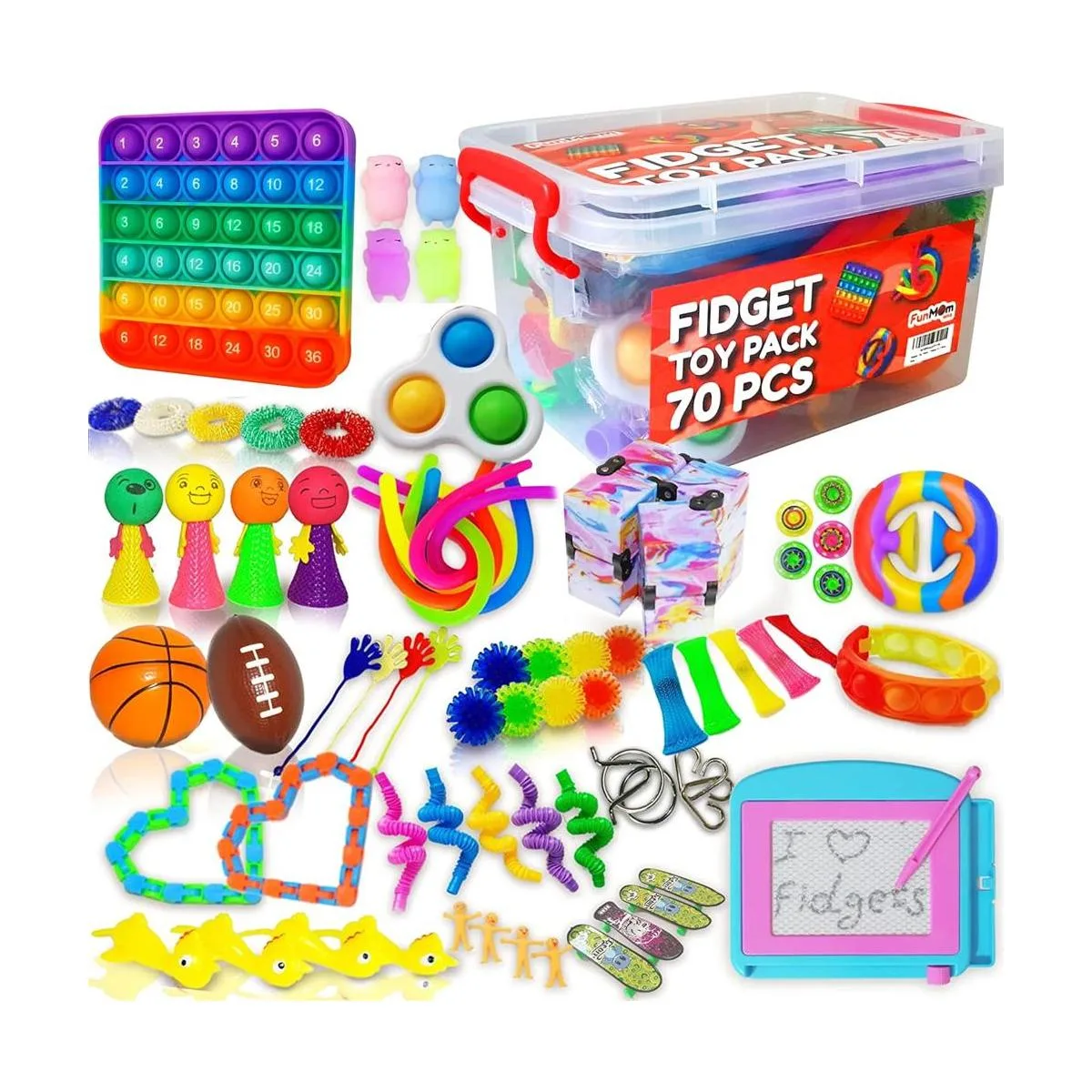 FunMomAmz Paquete de juguetes para la ansiedad, caja de juguetes para aliviar la ansiedad y el estrés, juego de juguetes para la ansiedad para niños, a diferencia de los demás, kit de herramientas educativas para empoderar, 70 piezas