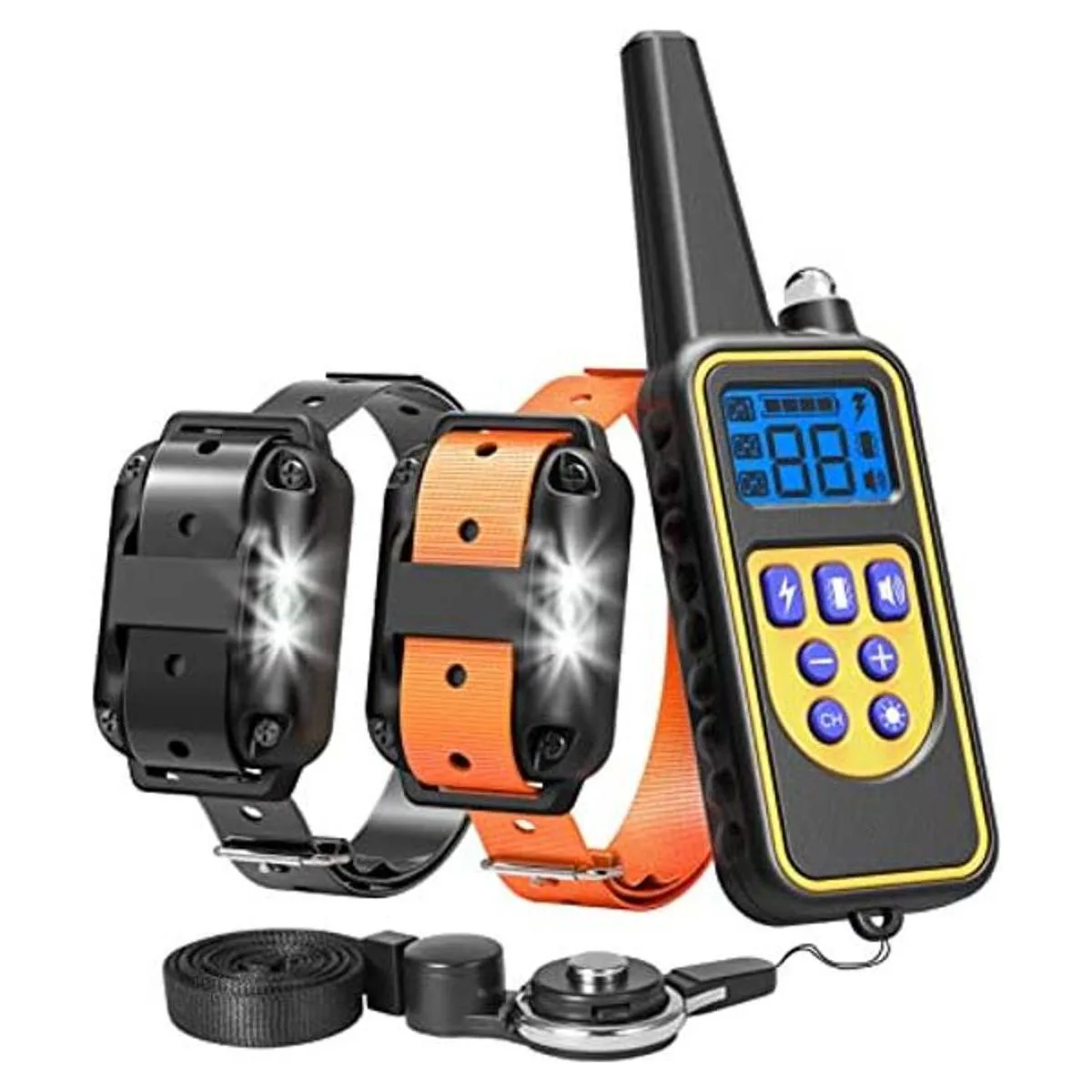 FunniPets Collar de entrenamiento para perros, collar de choque impermeable con control remoto de 2600 pies, collar E para 2 perros con 4 modos de entrenamiento, pitido de vibración de choque ligero para perros de raza pequeña, mediana y grande