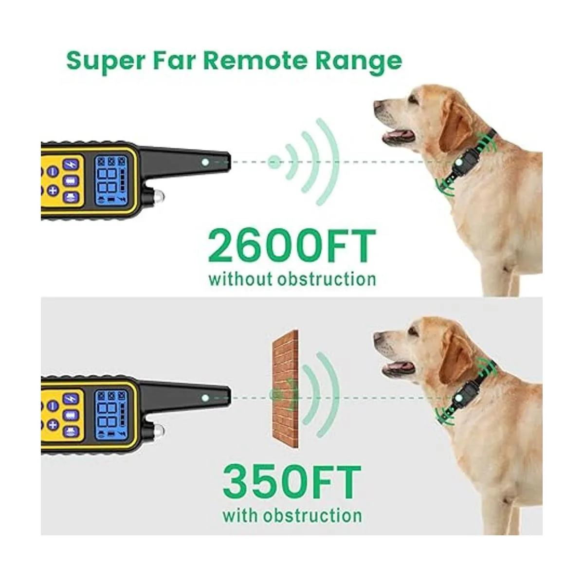 Rango remoto superlejano: alcance remoto de 2600 pies 875 yardas sin obstrucciones, fácil de entrenar a tu perro tanto en el parque como en el patio trasero, nunca te preocupes de que corra demasiado lejos. Si hay obstáculos alrededor, el rango remoto es de aproximadamente 350 pies