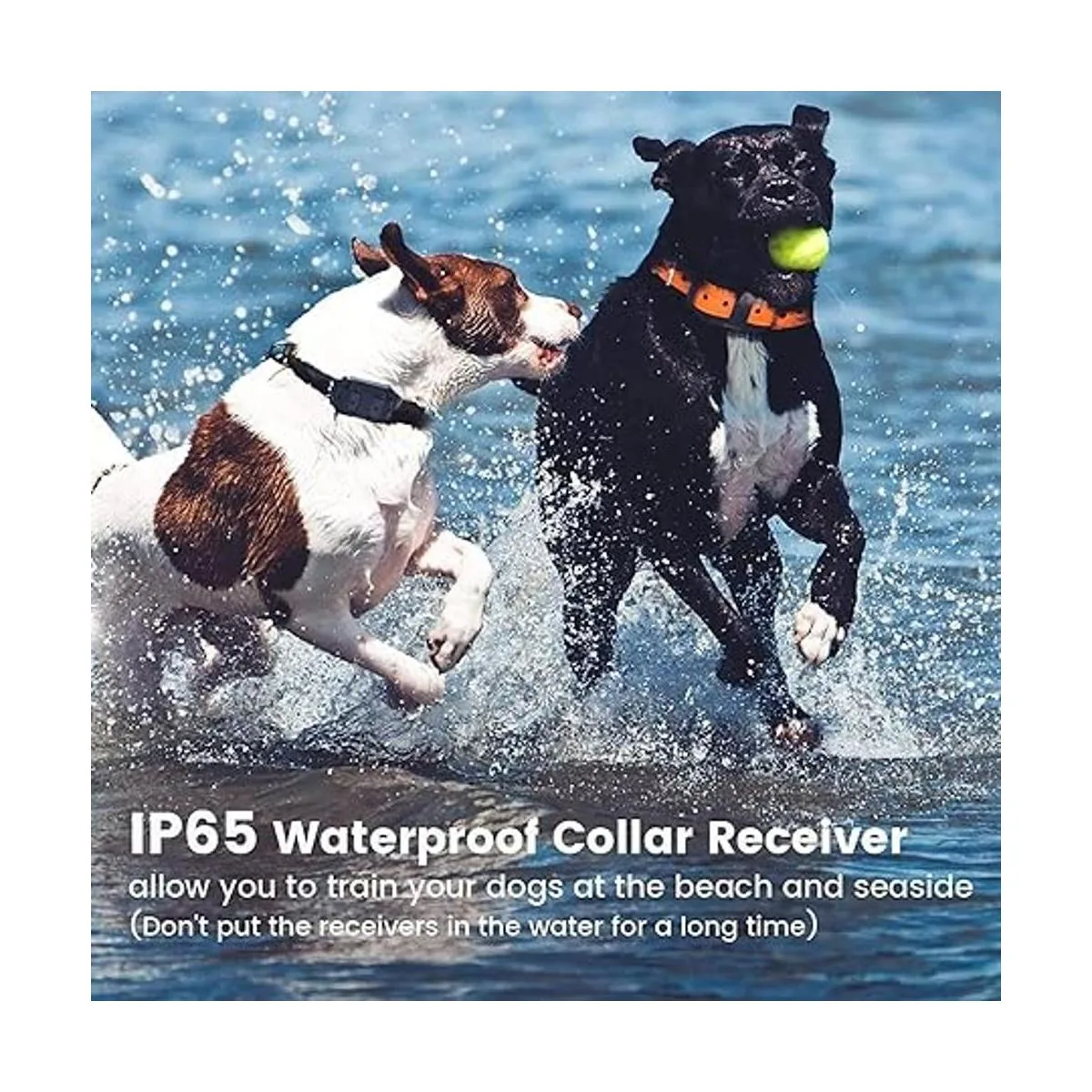 Collar de choque impermeable para 2 perros: el receptor es impermeable IP65, puedes entrenar a tus perros en la playa y la playa, pero no lo pongas en el agua durante mucho tiempo