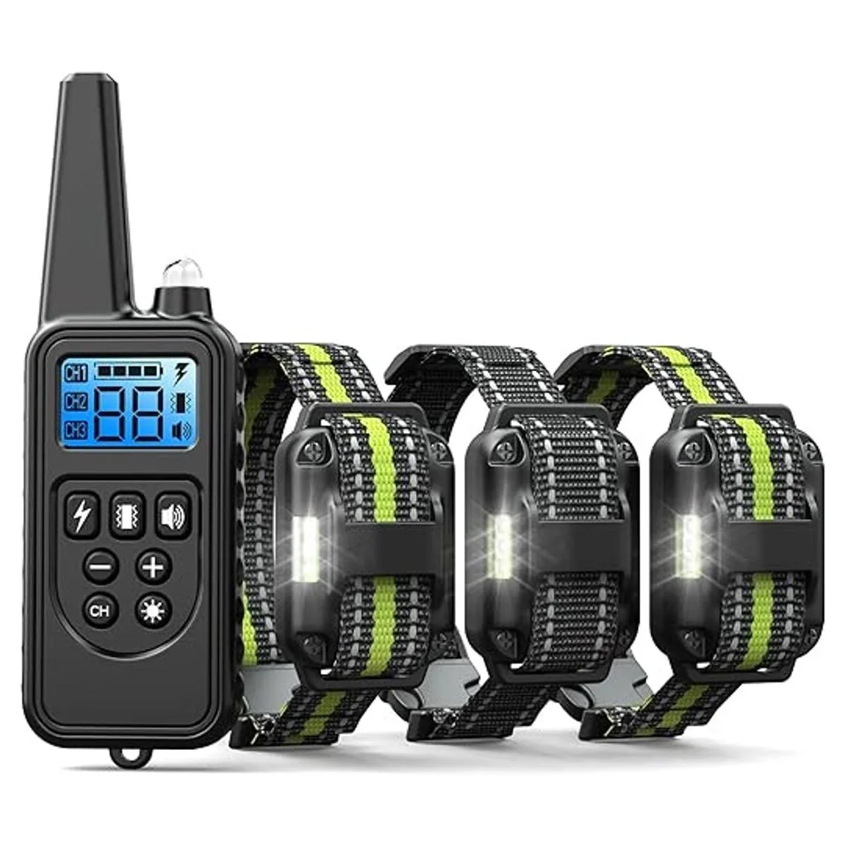 FunniPets Collar de entrenamiento para perros de 3 perros, collar de choque de perro de 2600 pies con control remoto, impermeable, collar electrónico para perros pequeños, medianos y grandes, con 4 modos de entrenamiento, luz estática de choque vibración, pitido
