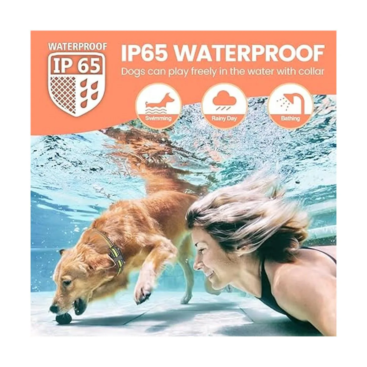 Collar de entrenamiento impermeable para perros: el receptor del collar es impermeable IP65, tu perro puede nadar o bañarse libremente con el collar puesto. Pero asegúrate de cerrar el puerto de carga al sumergir el receptor en agua y no lo pongas en el agua durante mucho tiempo. El collar es ajustable de 7 a 25.6 pulgadas. Recomendamos este collar de entrenamiento para perros pequeños, medianos y grandes