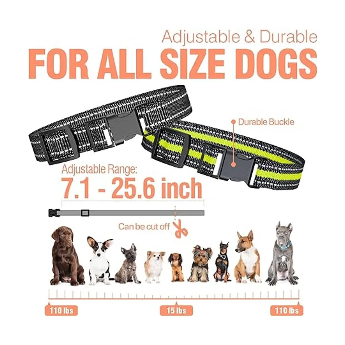 Luz LED integrada y collar reflectante: luz LED especial integrada en el receptor y el control remoto te ayuda a localizar a tu perro incluso en un ambiente oscuro. La correa reflectante en el collar de entrenamiento para perros puede reflejar la luz por la noche para garantizar la seguridad de tu perro, perfecta para caminar por la noche