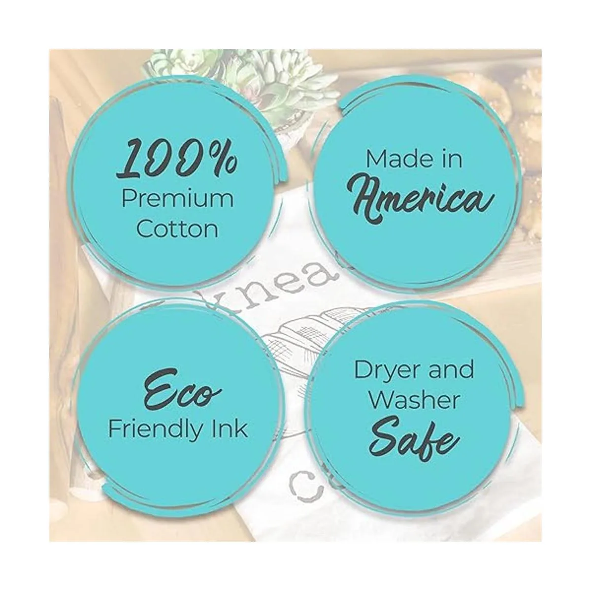 All of our dish towels are 100 cotton flour sack towels. They are screen printed with Moonlight Makers original designs using nontoxic ink.