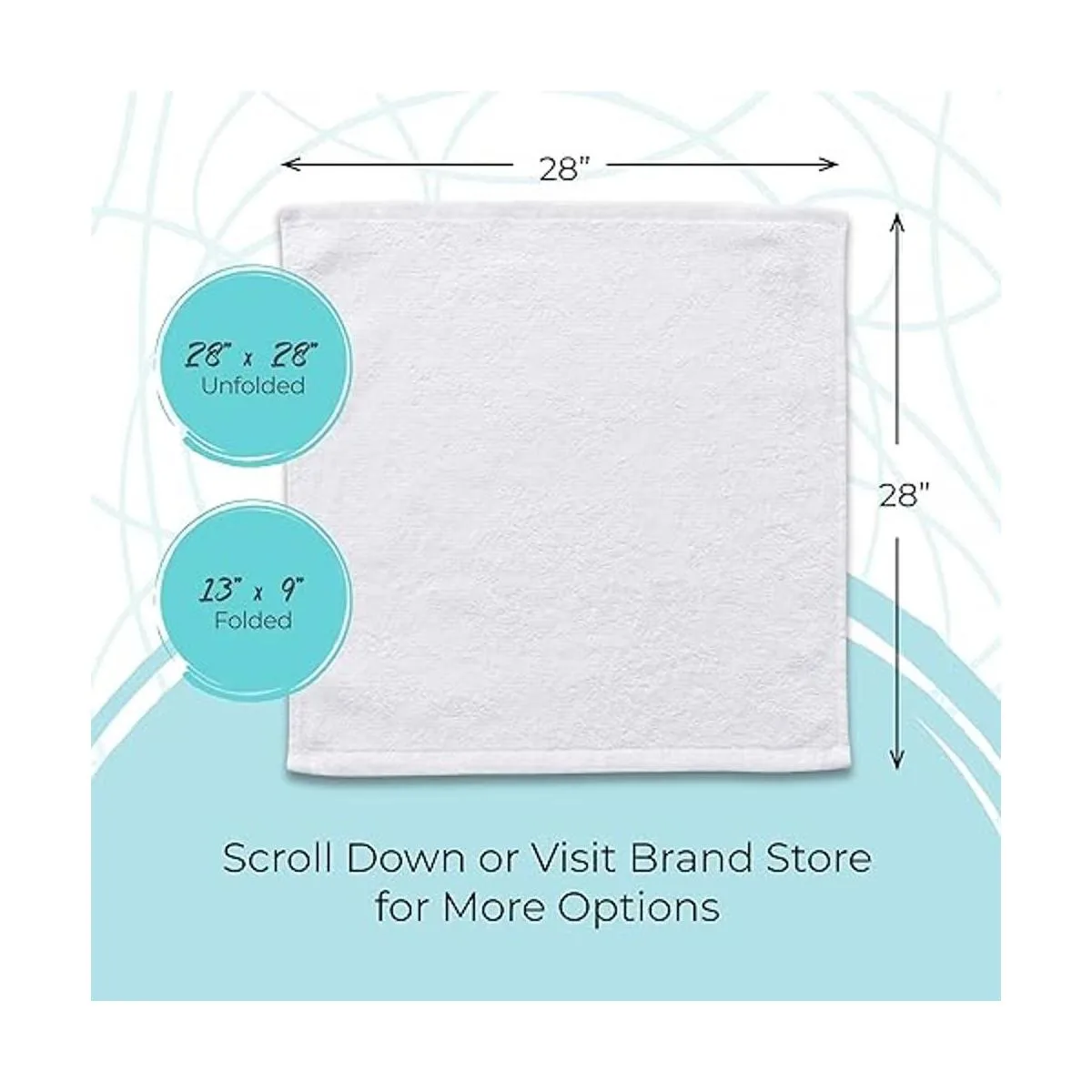 Unfolded size: 28×28. Super absorbent after a few washes.