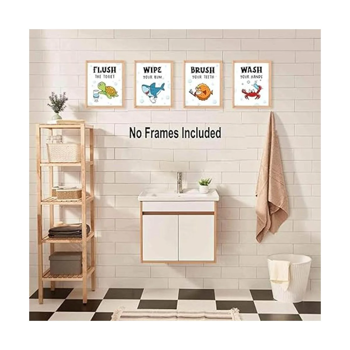 Funny Sea Critters Reglas de decoración de baño, diseño de tiburón océano, 4 juegos de arte 8 x 10 pulgadas, póster de pared de mar para guardería, adolescentes, niños, hijo, sobrino, decoración de baño para niños, sin marco tortuga