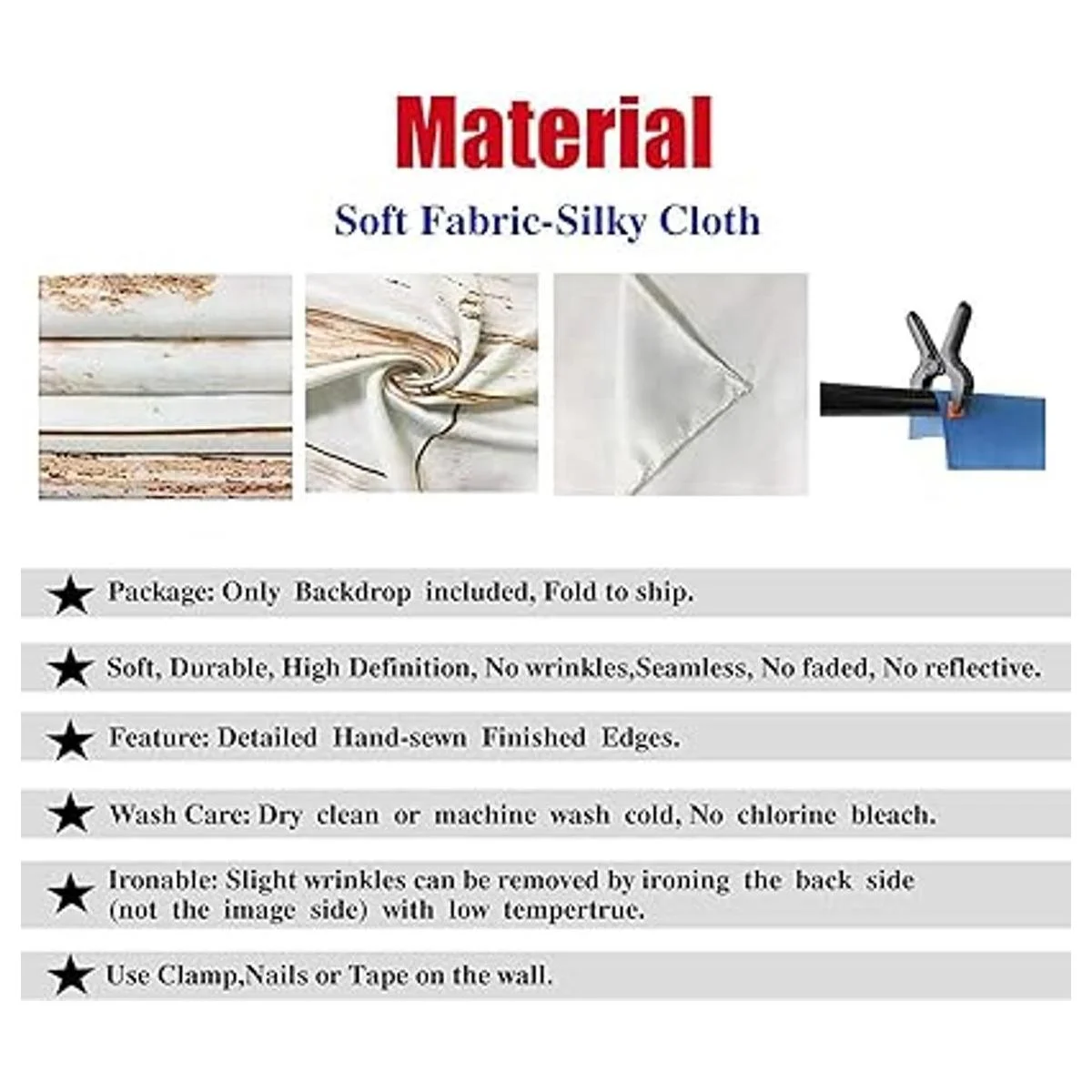 Material: poliéster económico: en comparación con el vinilo, esta tela no se arruga fácilmente. Es suave, duradera, reutilizable, sin costuras, fácil de llevar, más gruesa que el fondo de vinilo. Acabado a lo largo de todos los bordes para evitar desgarros. Se puede planchar y lavar con agua sin lejía.