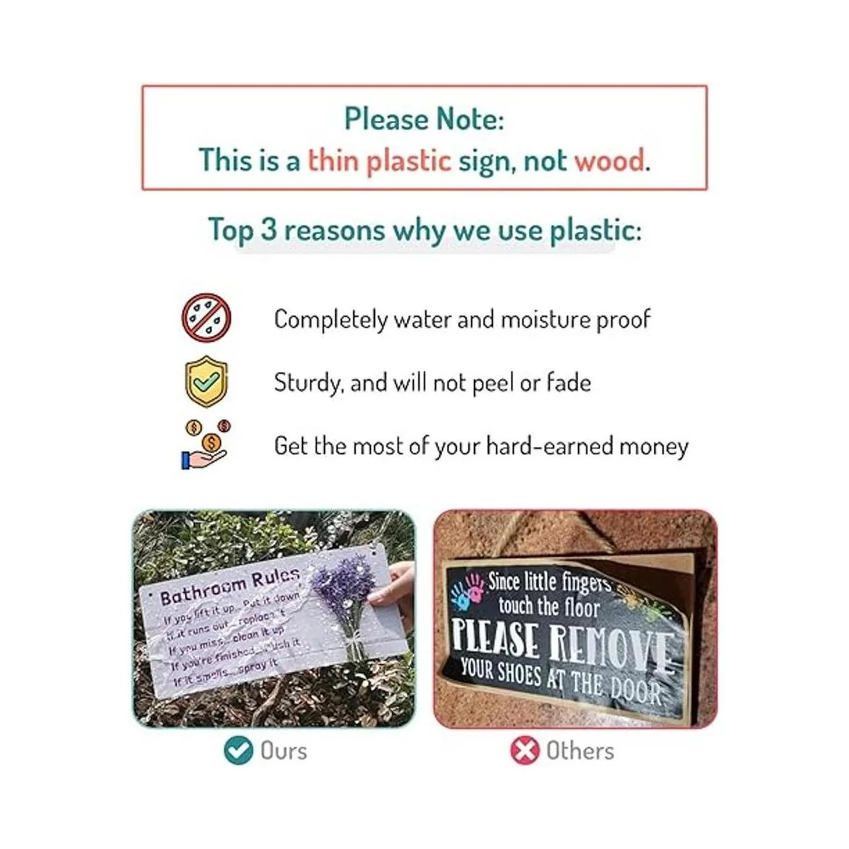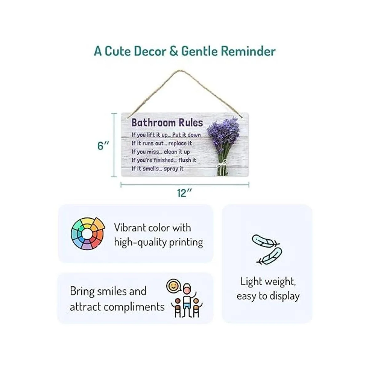 Un bonito recordatorio La decoración perfecta combina con el color y el tema de tu baño, y recuerda a las personas que sean civiles con sus necesidades. Un maravilloso regalo para familiares y amigos