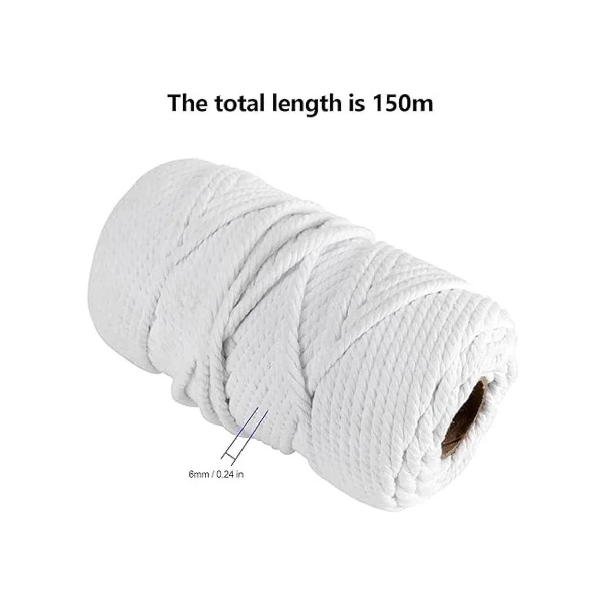 FUNSUEI Cordón de macramé natural de 0.236 in x 500 pies, cuerda de algodón blanco suave torcida de 4 hebras, cuerda de algodón de 14 pulgadas para tejer bricolaje, perchas de plantas y ropa, decoración de Navidad de boda, color blanco