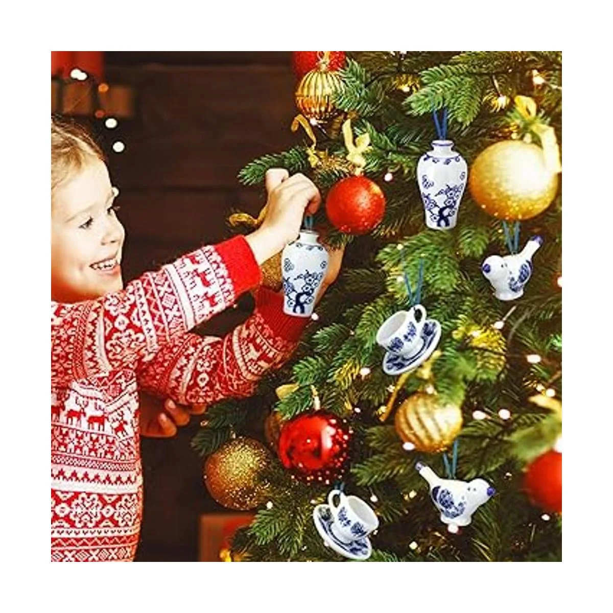 Juego de adornos de cerámica: recibirás 9 adornos de Navidad de porcelana, 3 de cada estilo; estas son tazas de té y platillo en miniatura, tarros de jengibre de porcelana y pájaros azules, que están inspirados en la porcelana tradicional azul y blanca para ayudarte a hacer una decoración creativa para árbol de Navidad