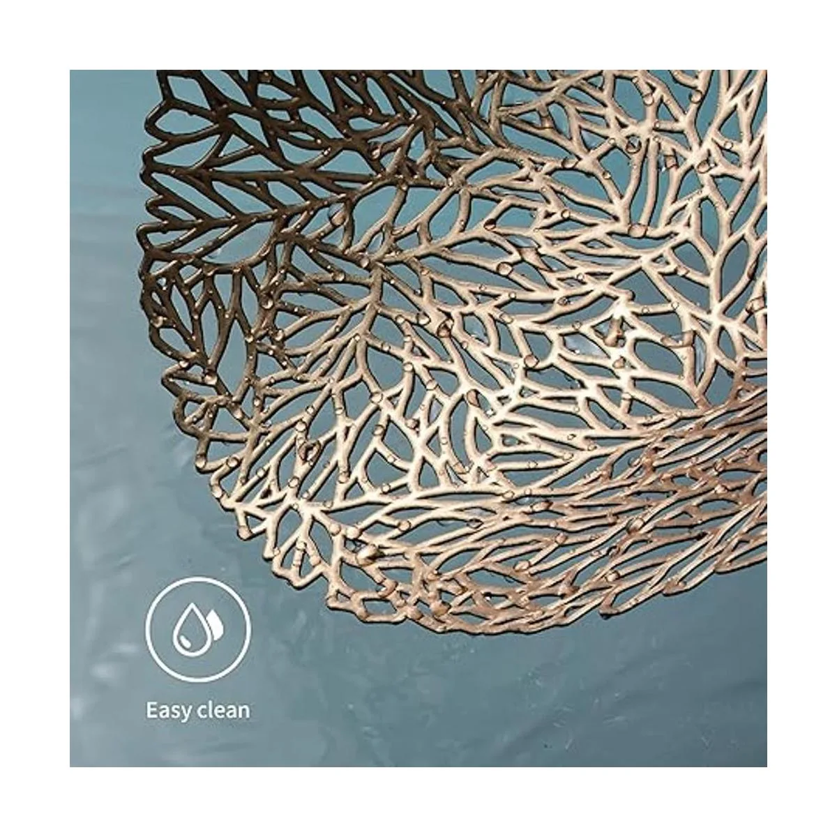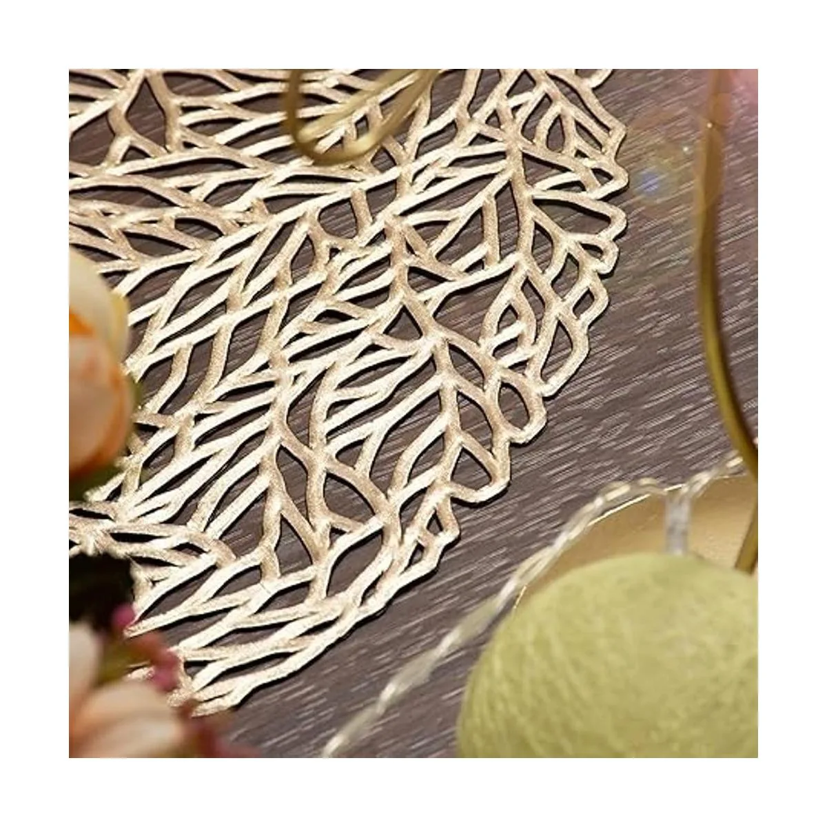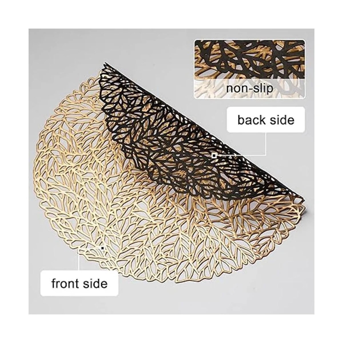 Material: estos manteles individuales huecos prensados están hechos de material 100 vinilo, brillo metálico dorado y plateado que hace que tu mesa de comedor sea más brillante, alegra tu hogar.