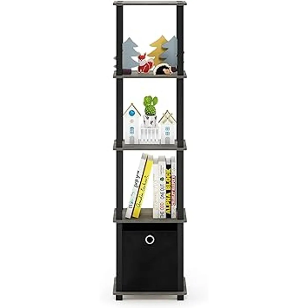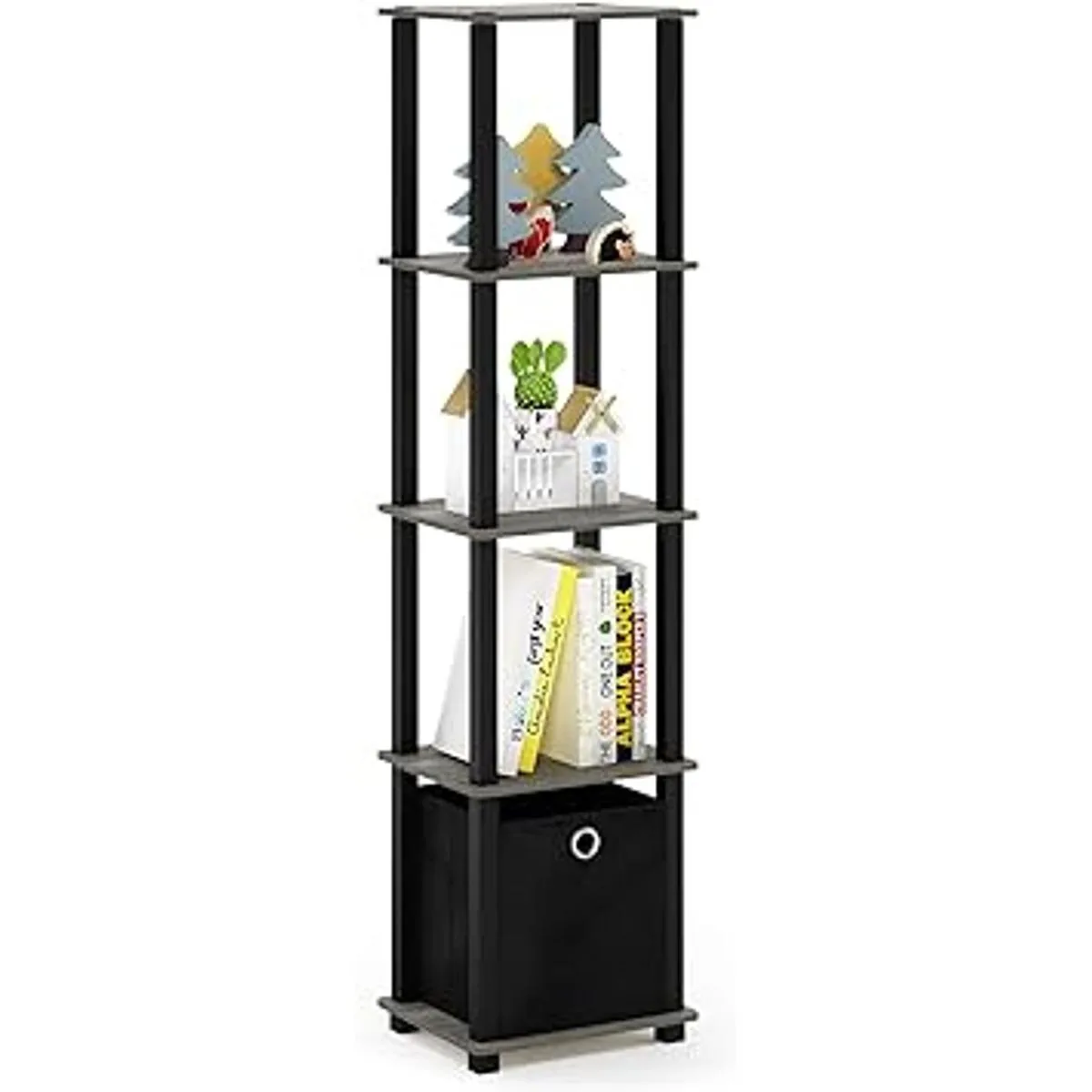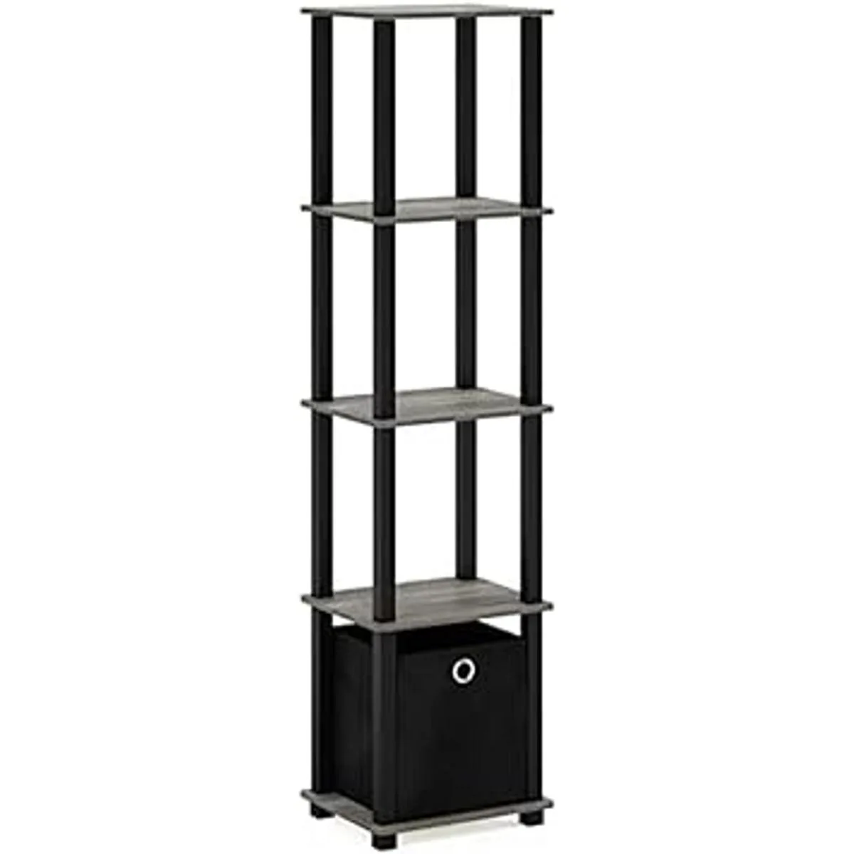 FURINNO TNT No Tools Estante decorativo de 5 niveles, roble francés, grisnegronegro