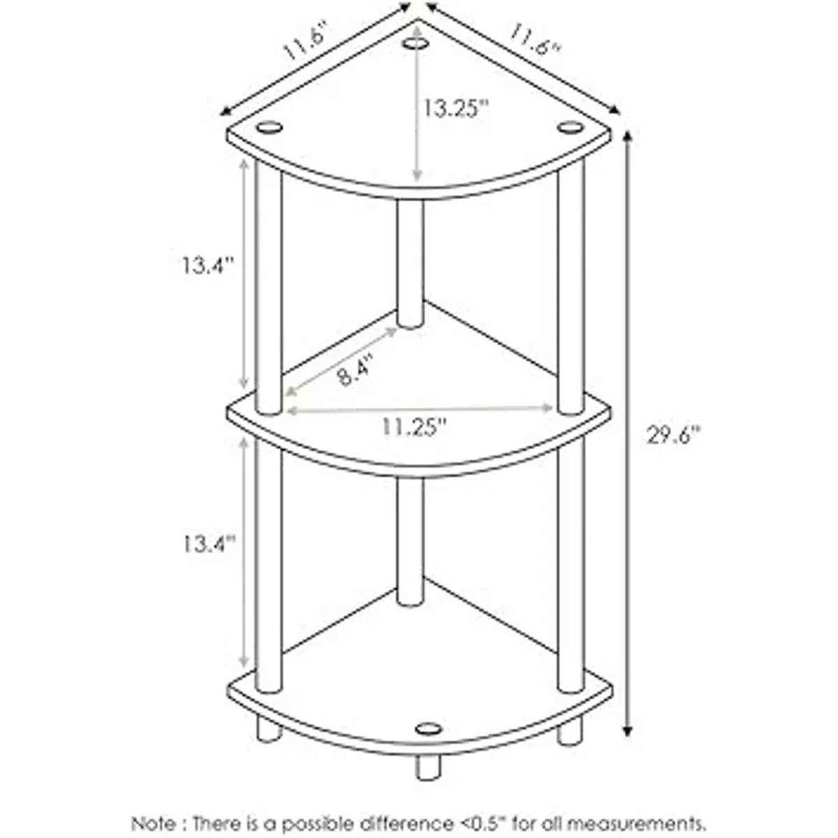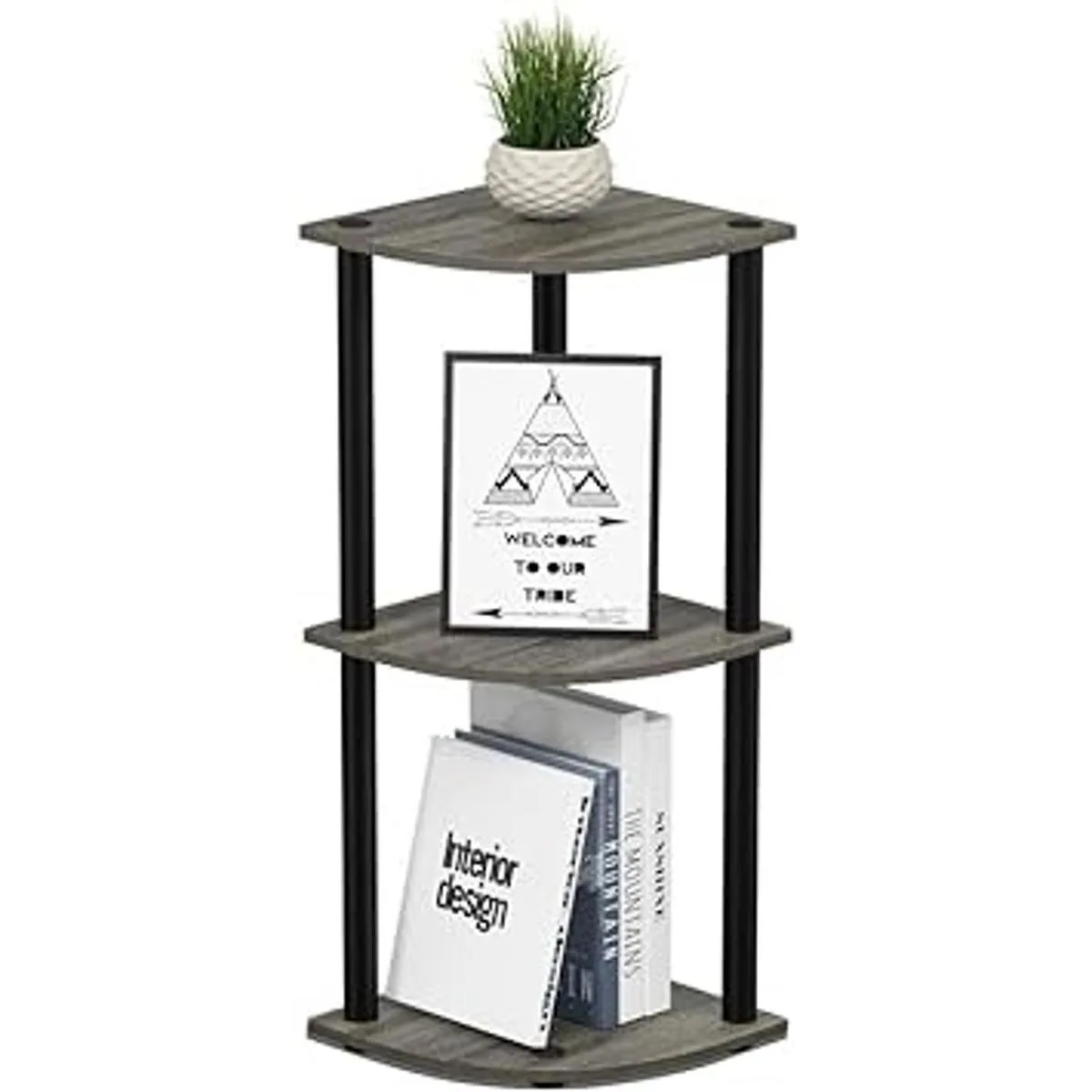 Furinno TurnnTube Estantería esquinera de 3 niveles multipropósito