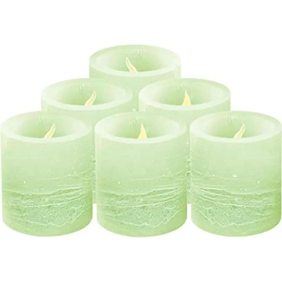 Furora LIGHTING Velas votivas LED verdes, paquete de 6, velas votivas sin llama parpadeantes de cera real con temporizador, 618 ciclos cada 24 horas, velas verdes para decoración de sala de estar, mesa de boda