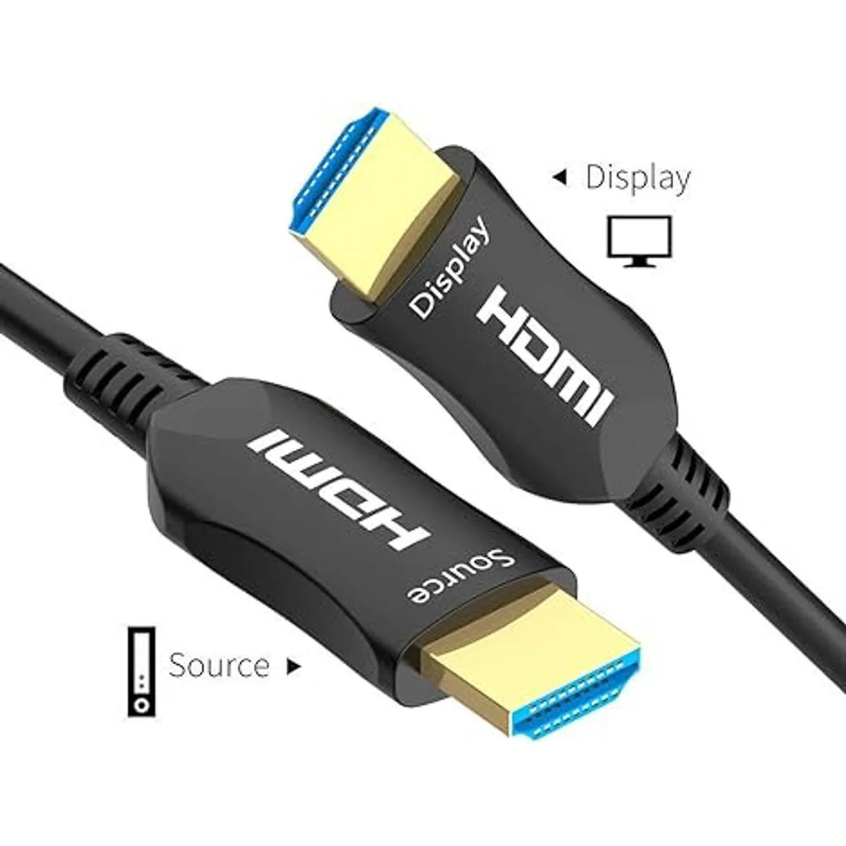 Cable HDMI 2.0b de fibra óptica activa: este tipo de cable es un enchufe de fuente de transmisión unidireccional para conectar fuente HDMI Bluray, STBox, etc.. Enchufe de visualización para conectar tu dispositivo de visualización HDMI TV, proyector de cine, etc.. Plug and Play, no necesita alimentación externa.
