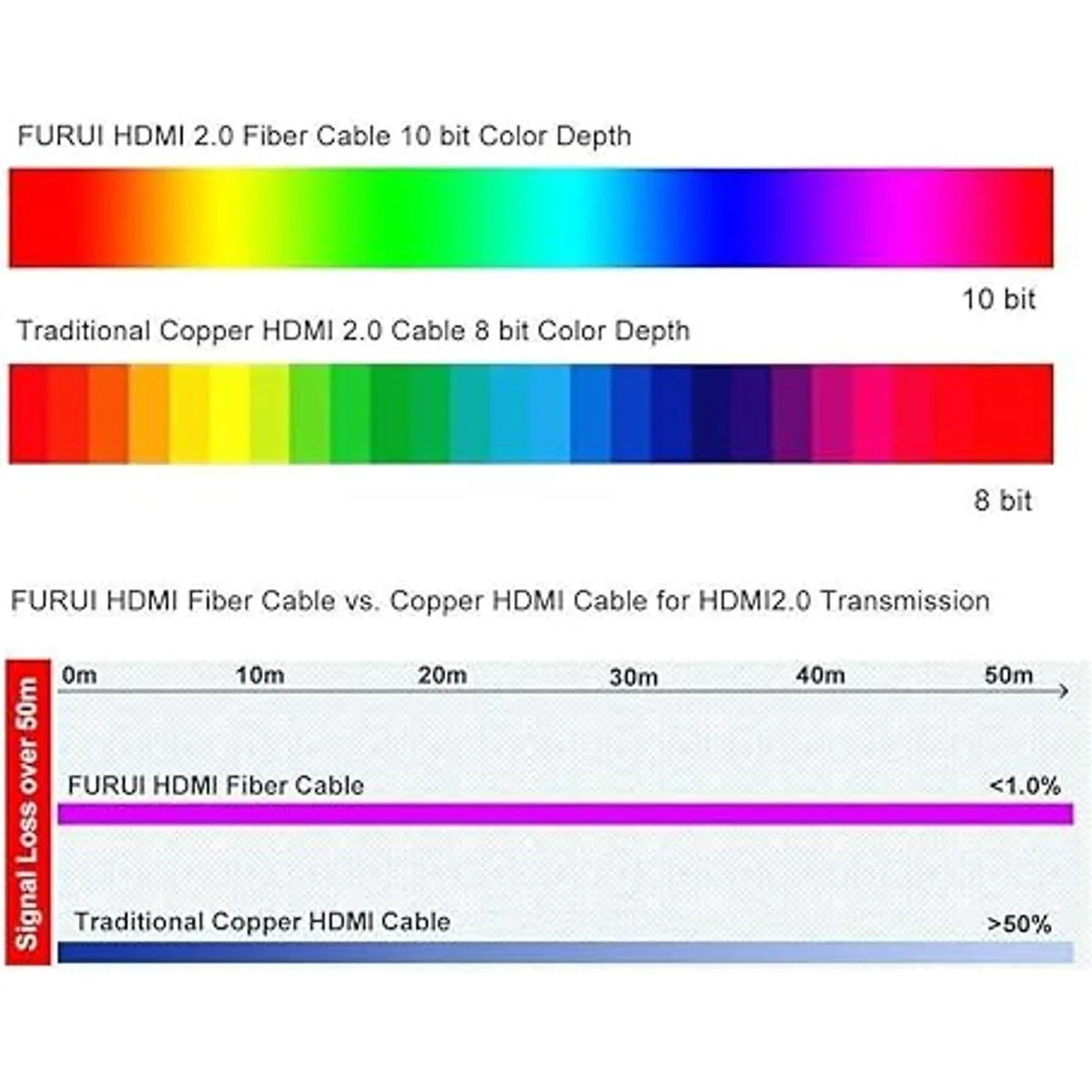 FURUI cable HDMI de fibra óptica de 4K 60 Hz, cable HDMI 2.0b HDR, ARC, HDCP 2.2, 3D, alta velocidad 18 Gbps, submuestreo 444422420, cable HDMI de fibra óptica delgado y flexible