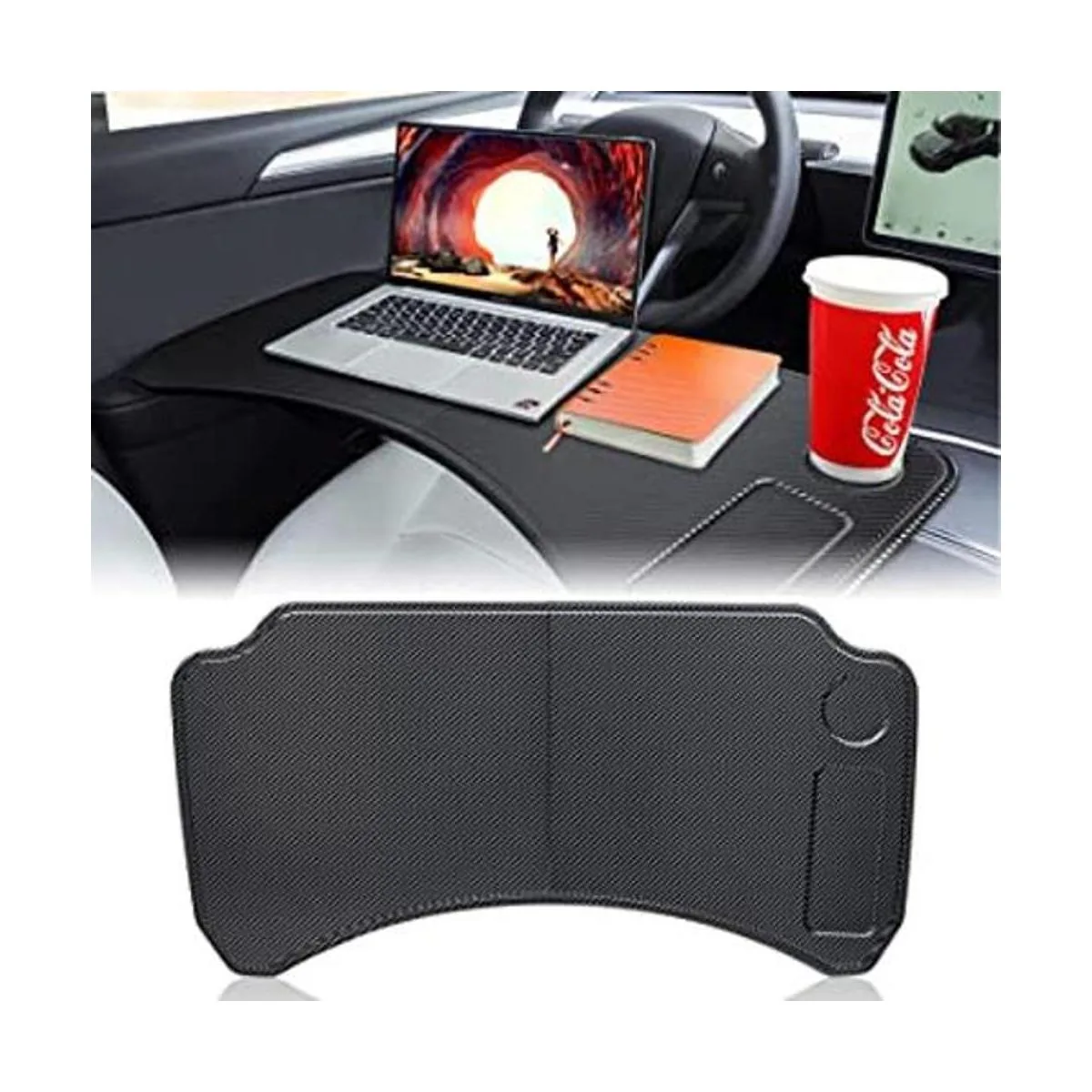 FURYENGRAVER Escritorio de gran espacio para Tesla Modelo Y Modelo 3 Bandeja para Comer Laptop iPad o Notebook Tesla Modelo Y Modelo 3 Accesorios Textura de Fibra de Carbono