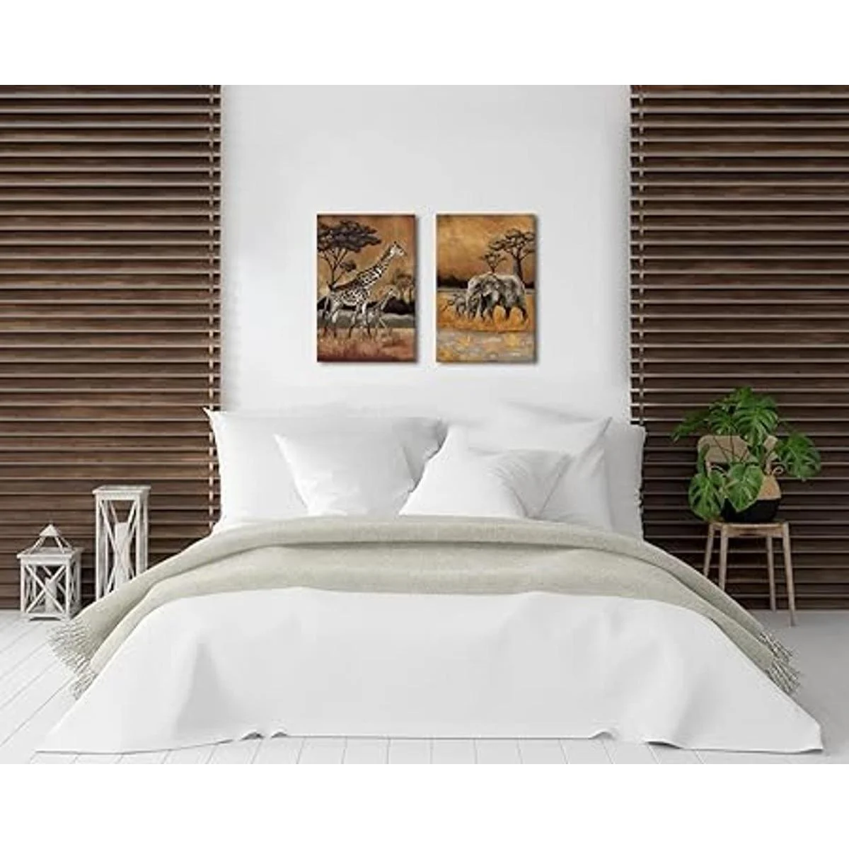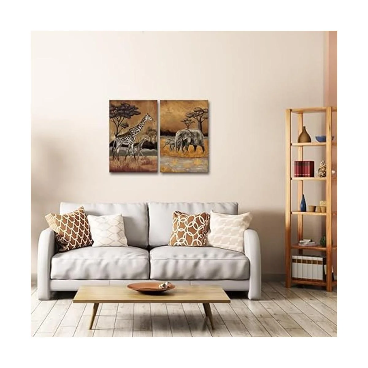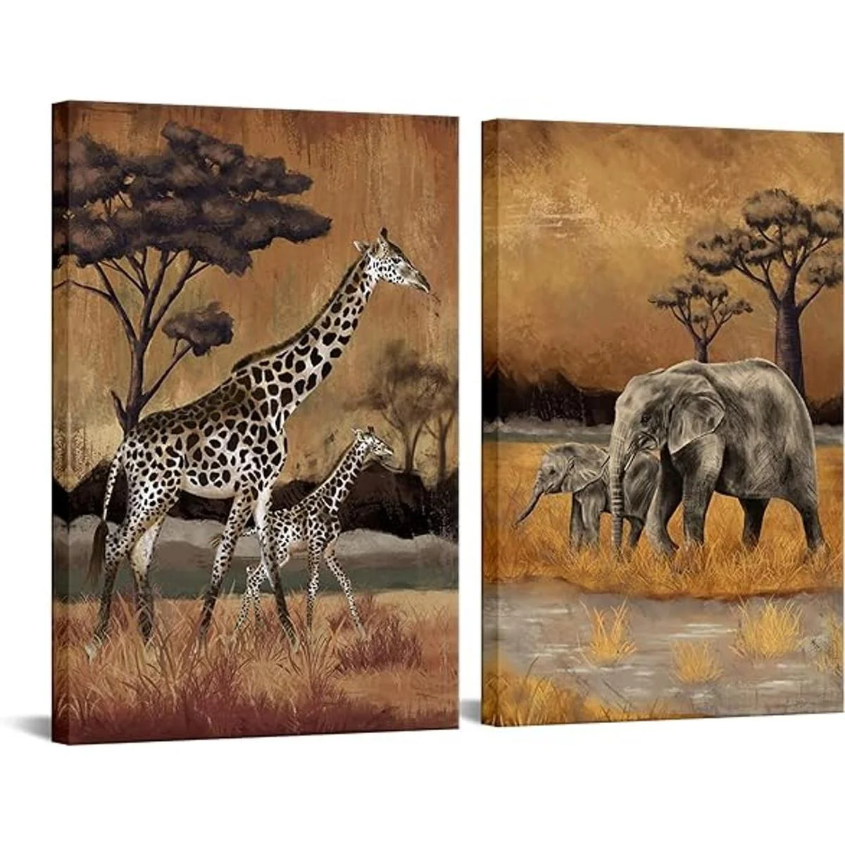 FuShvre frica 2 piezas de arte de pared para mamá y bebé, jirafa, elefante, safari, vida silvestre, obra de arte para el hogar, dormitorio, sala de estar