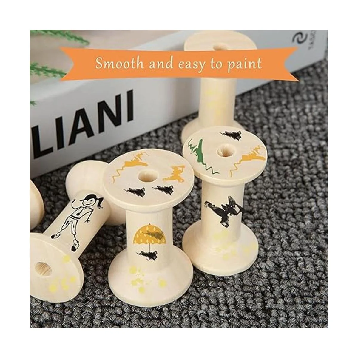 Material de madera de alta calidad: los carretes de cinta están hechos de madera natural de calidad, suave, sin astillas; ecológico, resistente y duradero para un uso prolongado