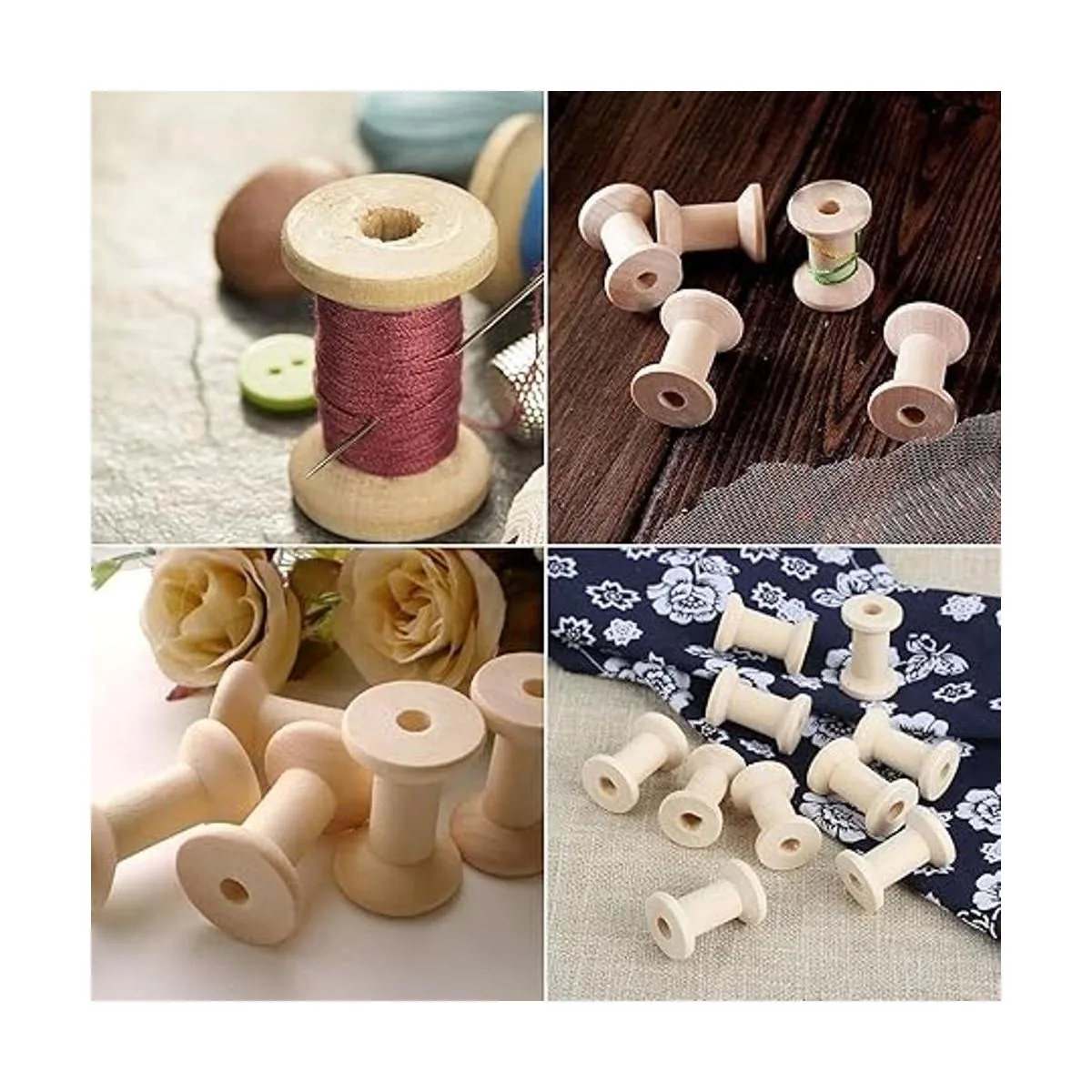 Amplia aplicación: los carretes de madera sin terminar para manualidades son ideales para enrollar hilo de algodón o para manualidades. Se pueden decorar, pintar, teñir, sellar para proyectos de manualidades de madera o adornar aún más para fines decorativos