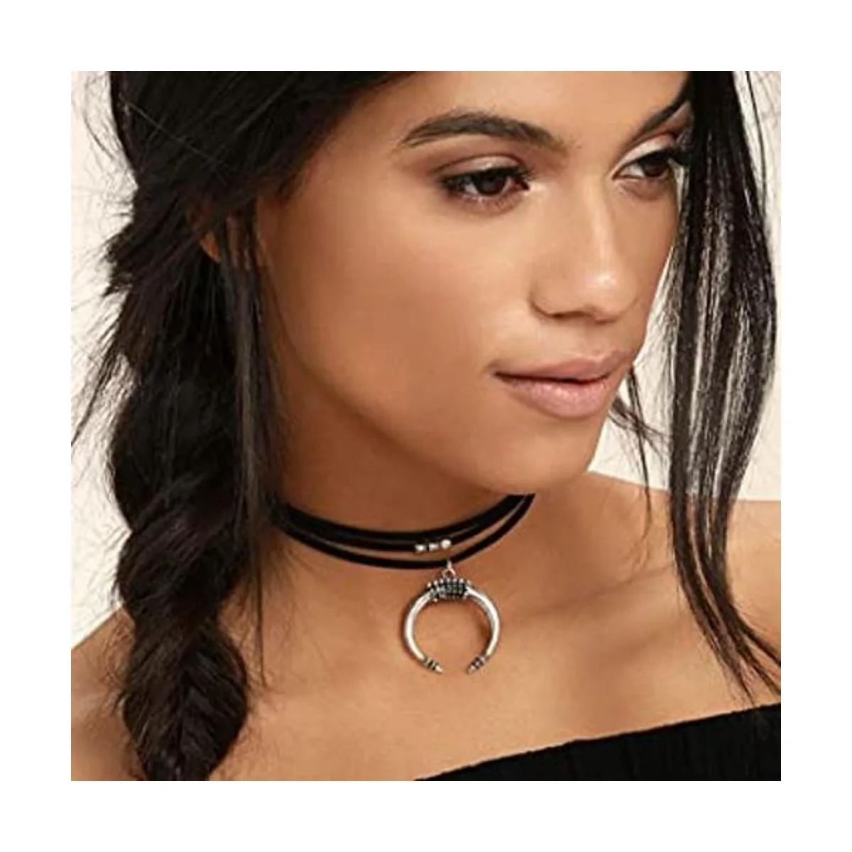 fxmimior Gargantilla con colgante de luna negra y luna creciente para mujer, sexy, hecha a mano, para mujer