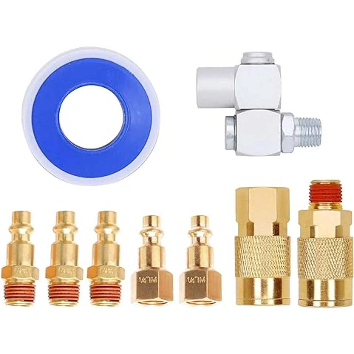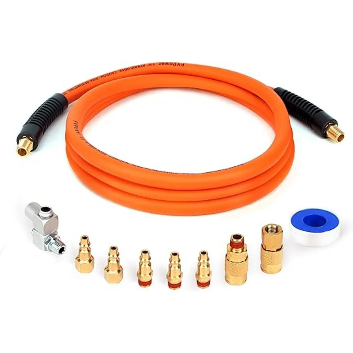 Kit de manguera de compresor de aire avanzado: este juego de 10 piezas de manguera de compresor incluye una manguera de aire híbrida de 10 pies, conexión rápida de latón macizo industrial, conector giratorio de 360, cinta PTFE.