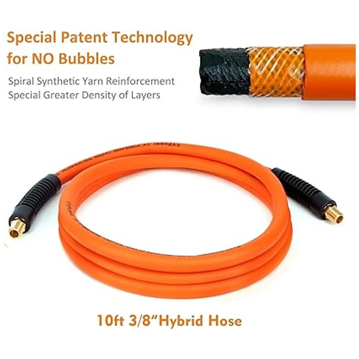 Manguera de aire híbrida flexible y ligera: ofrece más control y versatilidad sobre una manguera de compresor de aire estándar, nuestra manguera híbrida de 3/8 pulgadas x 10 pies con acopladores FNPT y MNPT de pulgadas ofrece 300 PSI de presión estable.