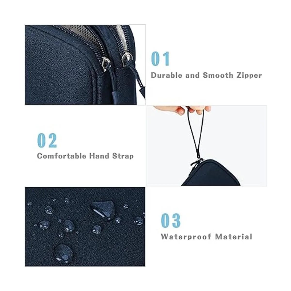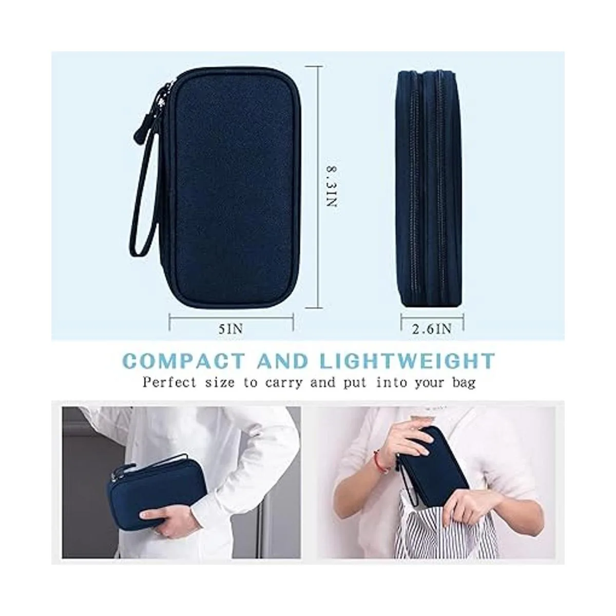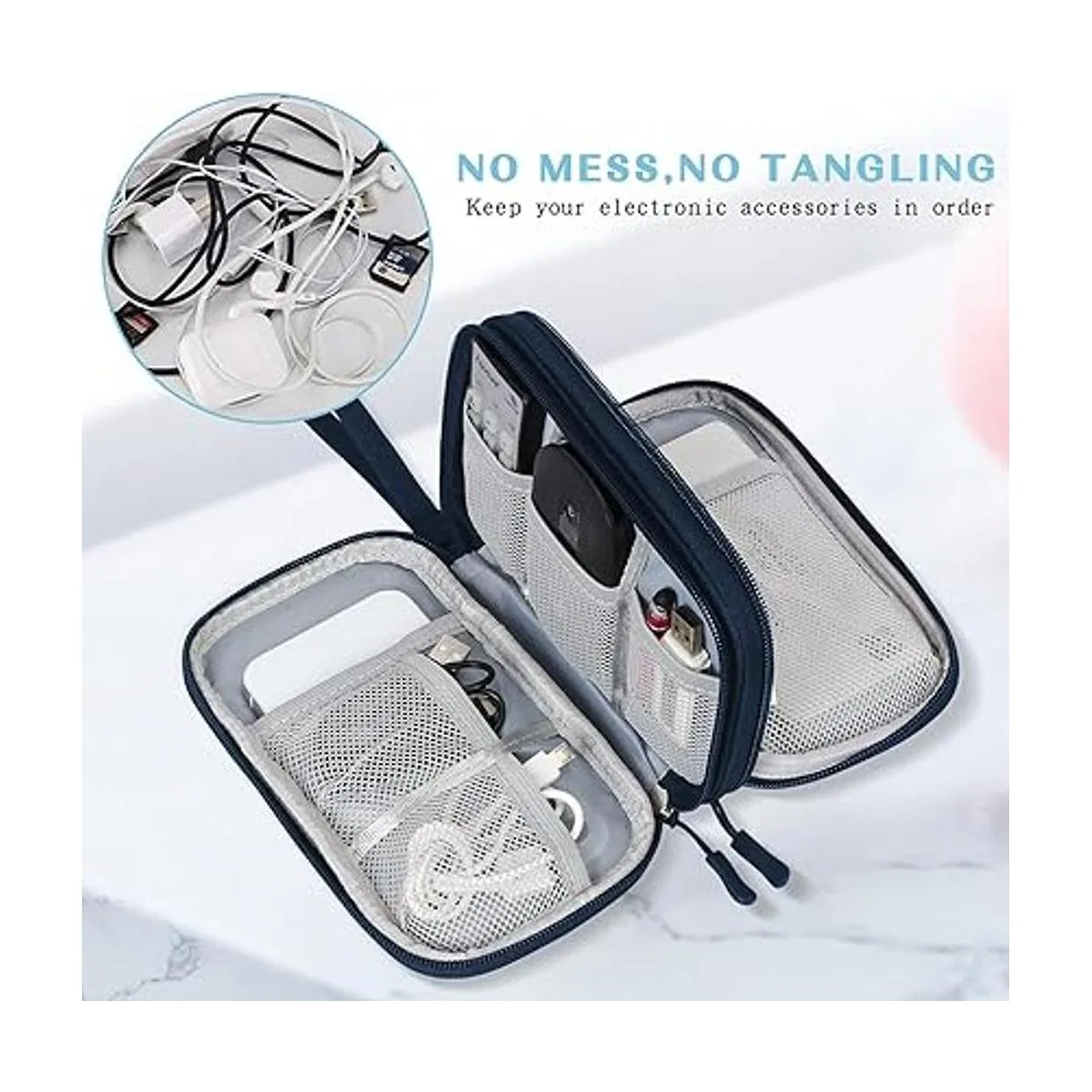 FYY Organizador electrónico, bolsa organizadora de cables de viaje, accesorios electrónicos, funda de transporte portátil, impermeable, bolsa de almacenamiento de doble capa para cable, cable, cargador, teléfono, auriculares, tamaño mediano, azul marino