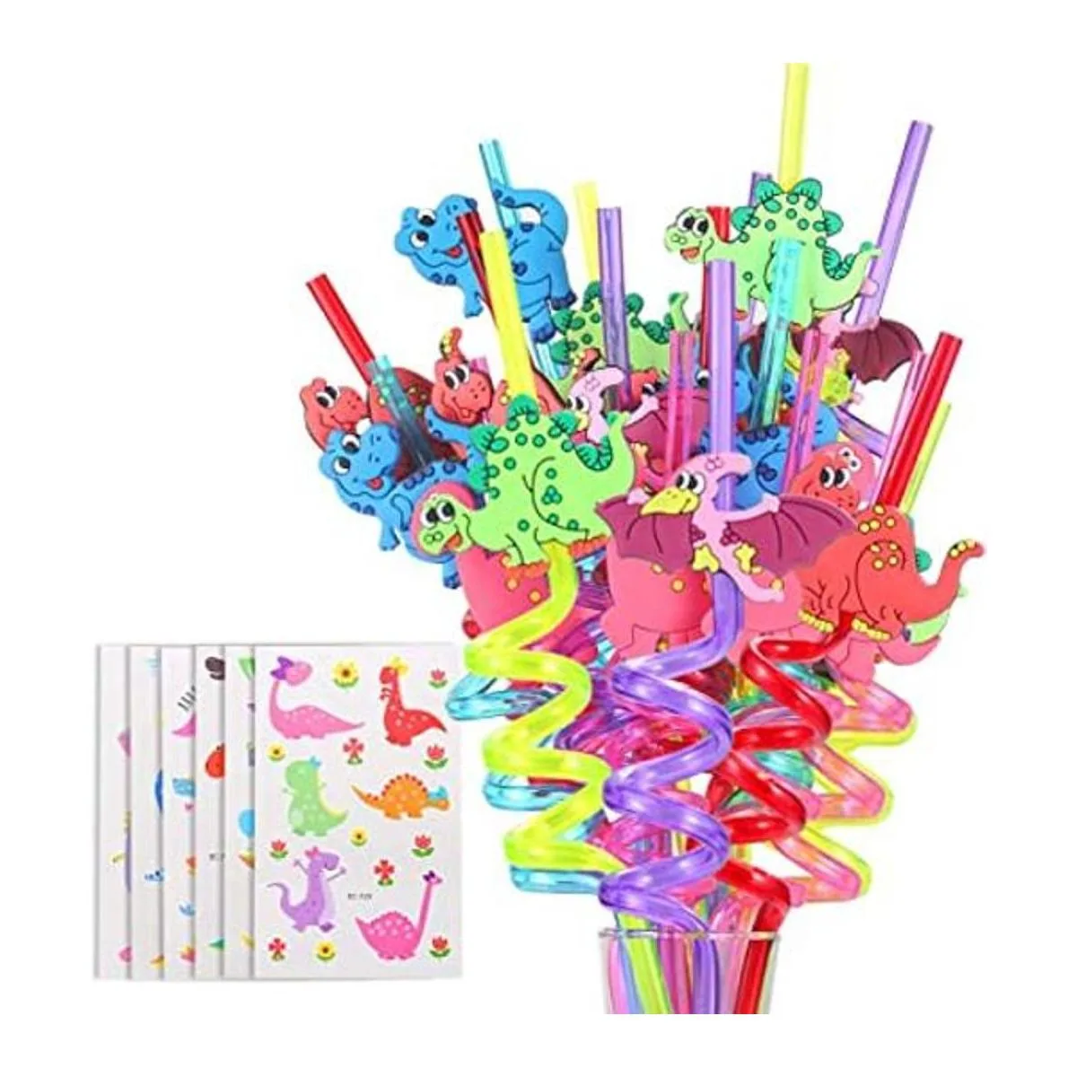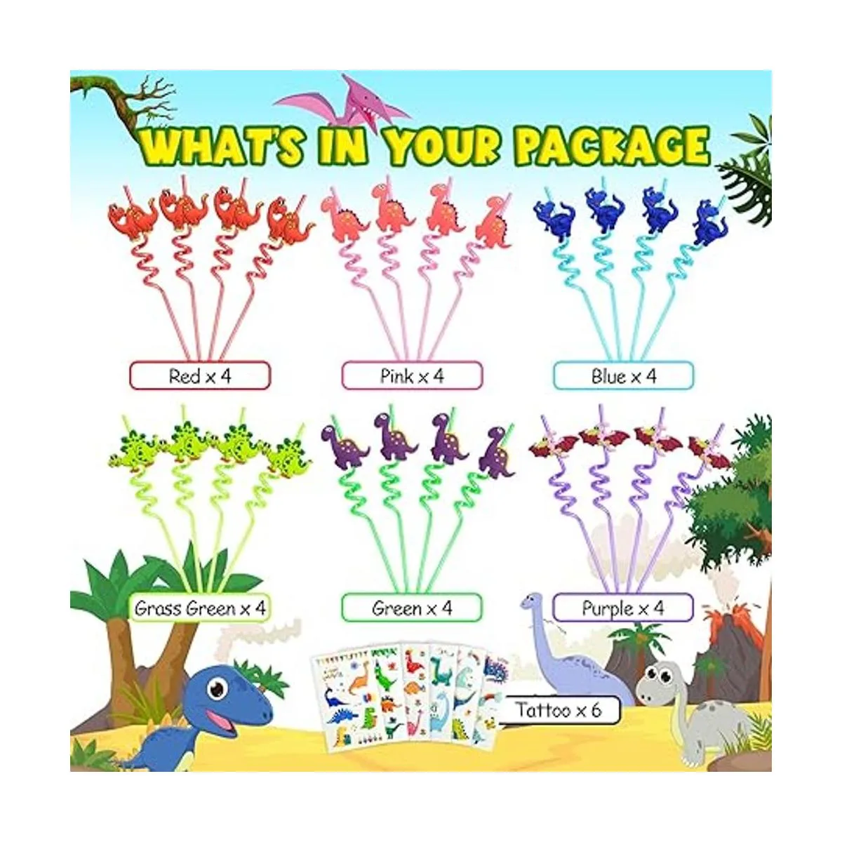 suficiente para toda la fiesta: las pajitas reutilizables de dinosaurio tienen 6 colores diferentes y diseño mezclado, cada diseño de 4 piezas. tatuajes de dinosaurio súper lindos con diseño en t para rex, stegosaurus, pterosaurios, triceratops brontosaurus con súper lindos volcanes adicionales de dino crossing y selva que a los niños les encantará