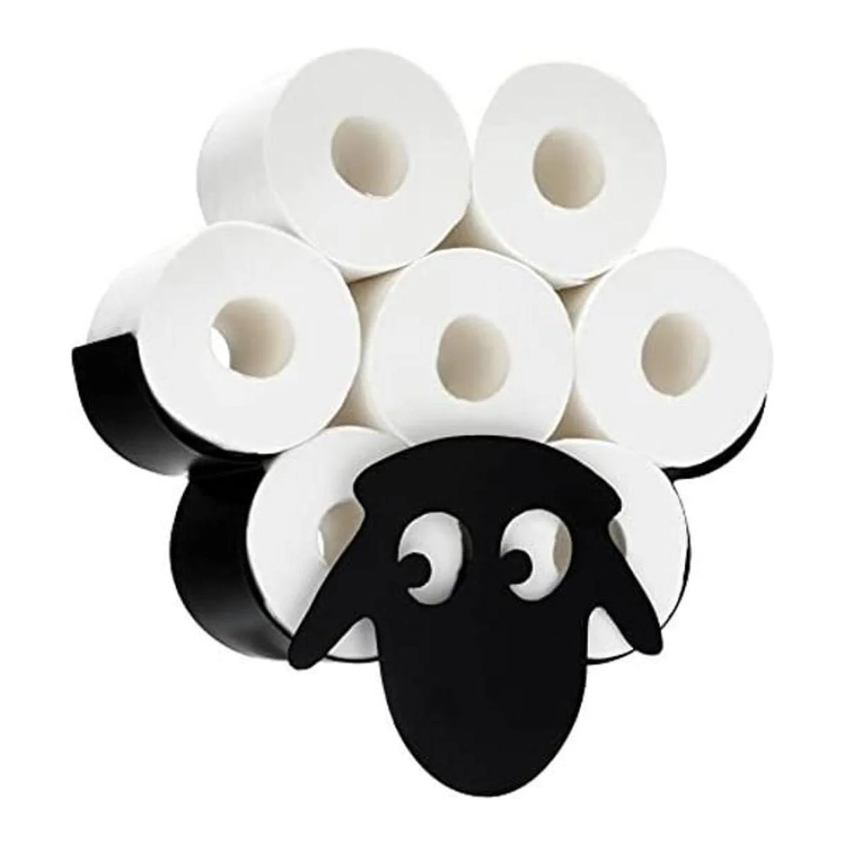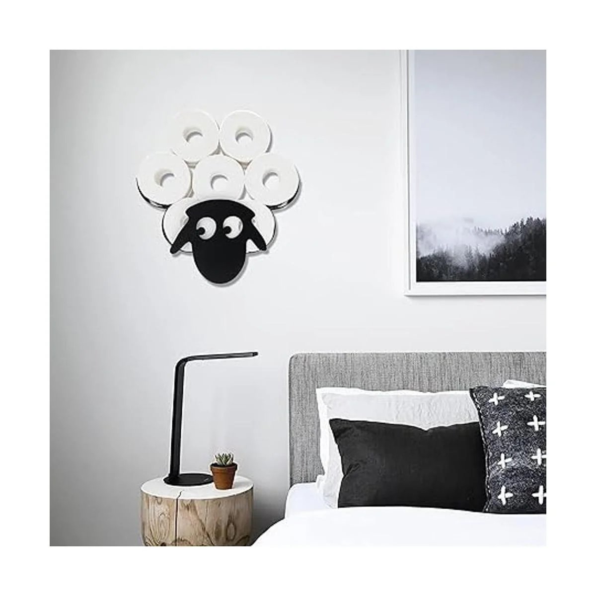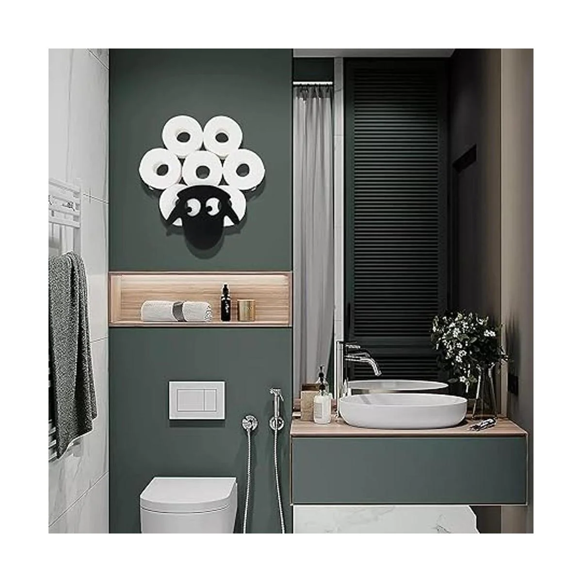G Ganen Soportes de papel higiénico decorativos para animales, soporte de almacenamiento de papel de seda Cesta de tejido de hierro para montaje en pared, decoración de arte de oveja, decoración de baño de casa, oficina, rollos de papel de seda oveja