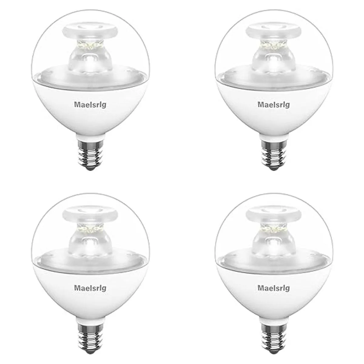 G16.5 Bombilla LED regulable, 7 W equivalente a 60 W, base de candelabro E12, luz diurna 5000 K, bombillas de globo de vidrio transparente para candelabros, ventiladores de tocador y techo, paquete de 4