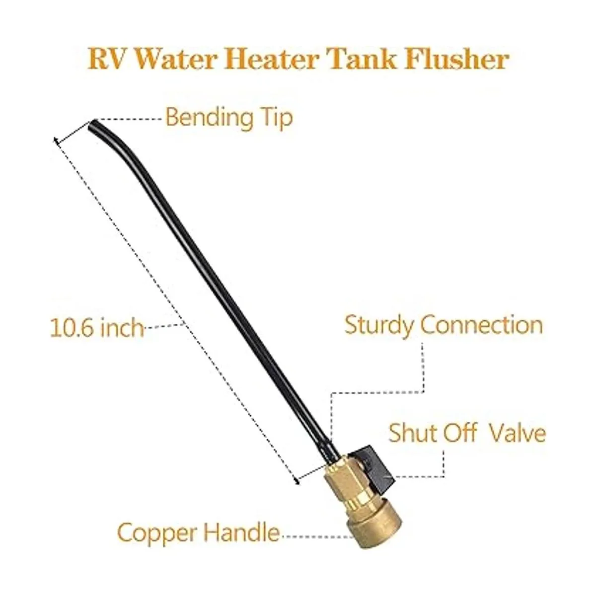 GaeaAuto Enjuagador de tanque de calentador de agua de cobre para RV Retira los sedimentos de la parte inferior del calentador de agua de RV Mango de cobre y varita de limpieza negra con punta de flexión