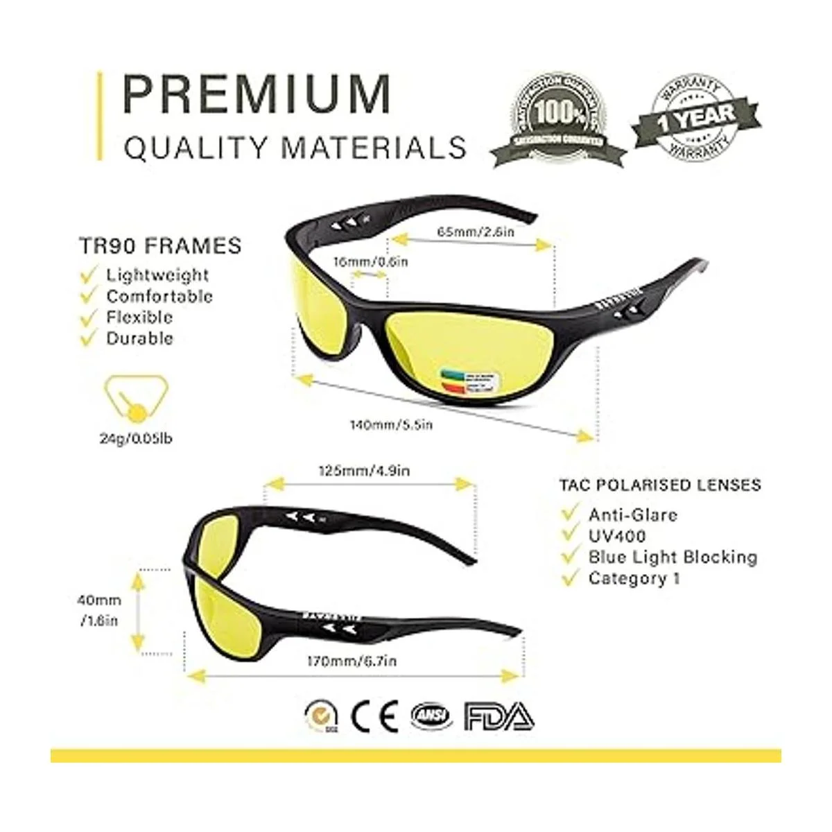 Gafas de conducción nocturna antirreflejos, lentes de visión nocturna ZILLERATE HD para conducir, lentes polarizados TAC, lentes de sol tintados amarillos, lentes de conducción nocturnas que reducen el deslumbramiento para hombres y mujeres, Amarillo, Universal
