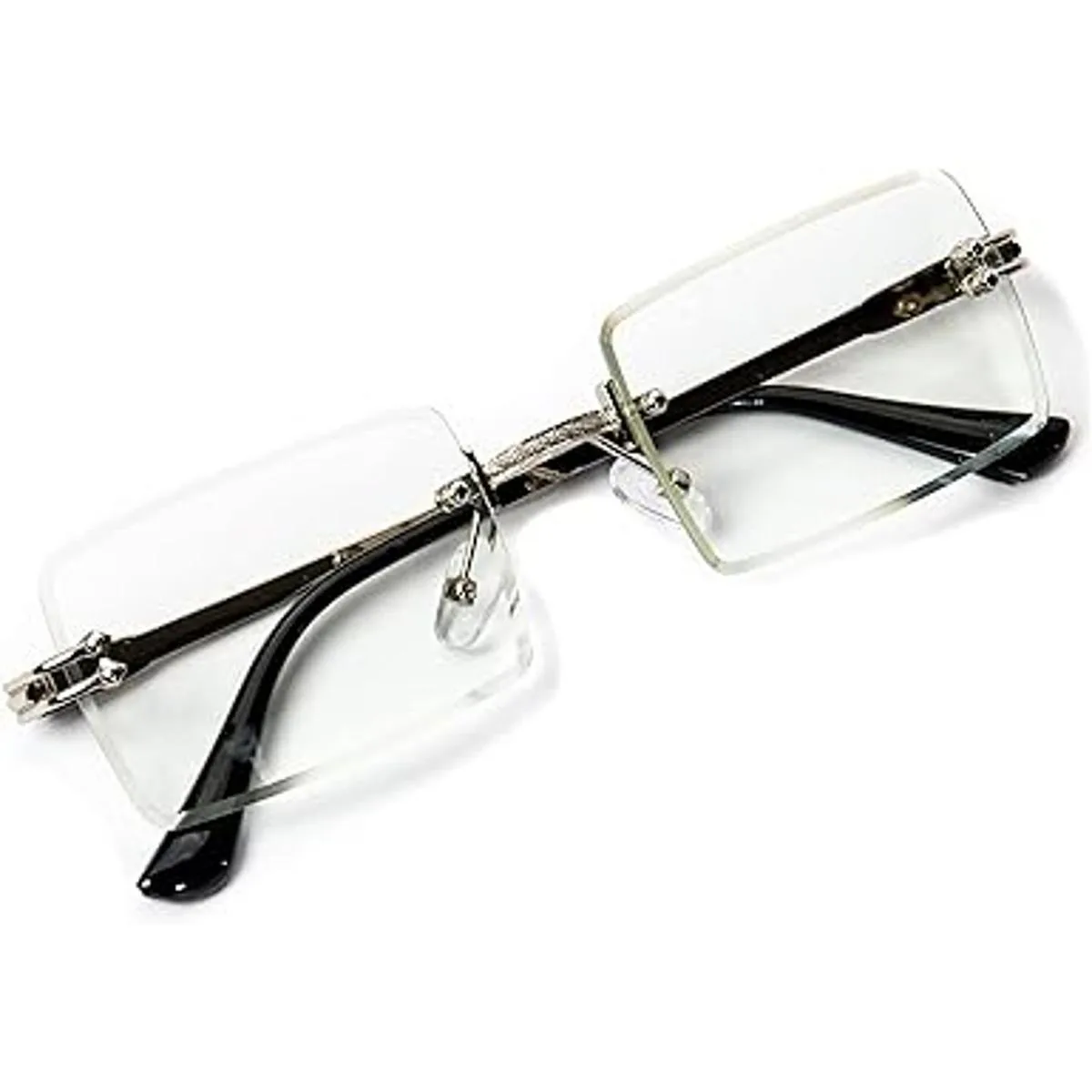 Lentes rectangulares para hombre, montura plateada, vintage, retro, transparente, color de la lente: metal/blanco, chapado en oro, ancho del marco: 5.236 in, ancho de la lente: 2.087 in, altura del marco: 1.181 in, ancho del puente: 0.787 in