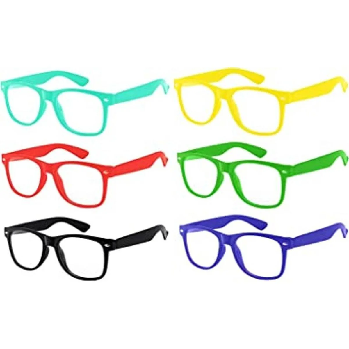 Gafas de sol clásicas vintage retro de los años 80 con marco de lente transparente, color turquesa, blanco, negro, rosa, azul, rojo, paquete de 6 OWL , Transparente, azul.