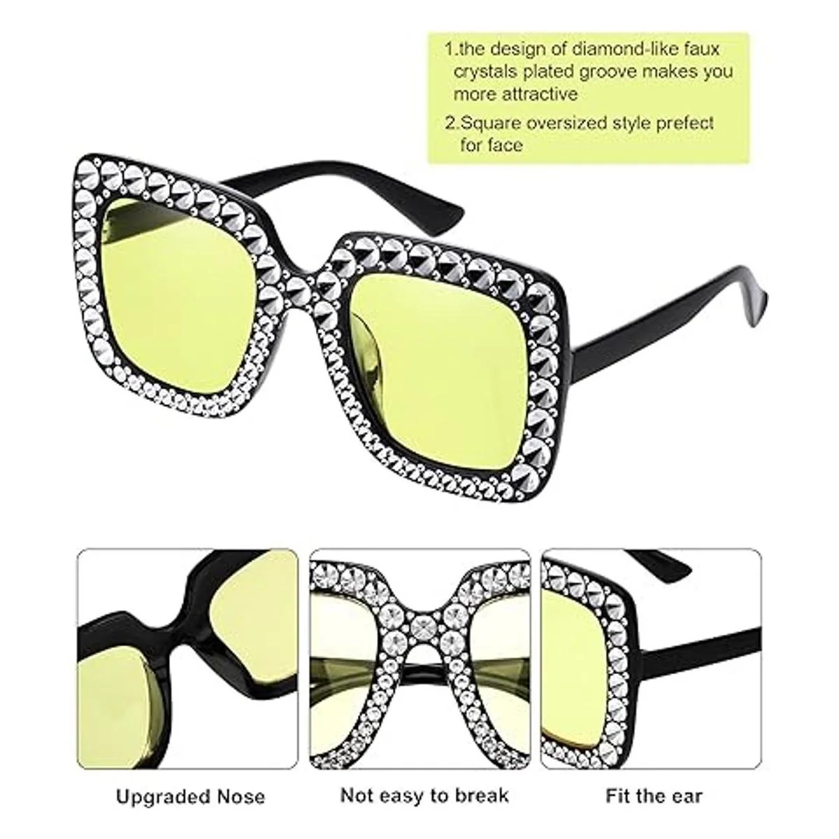 Diseñado con montura cuadrada brillante con diamantes de imitación, usar las gafas de sol cuadradas de diamantes de imitación te harán más llamativo y elegante, destacando tu aspecto y haciéndote más seguro.