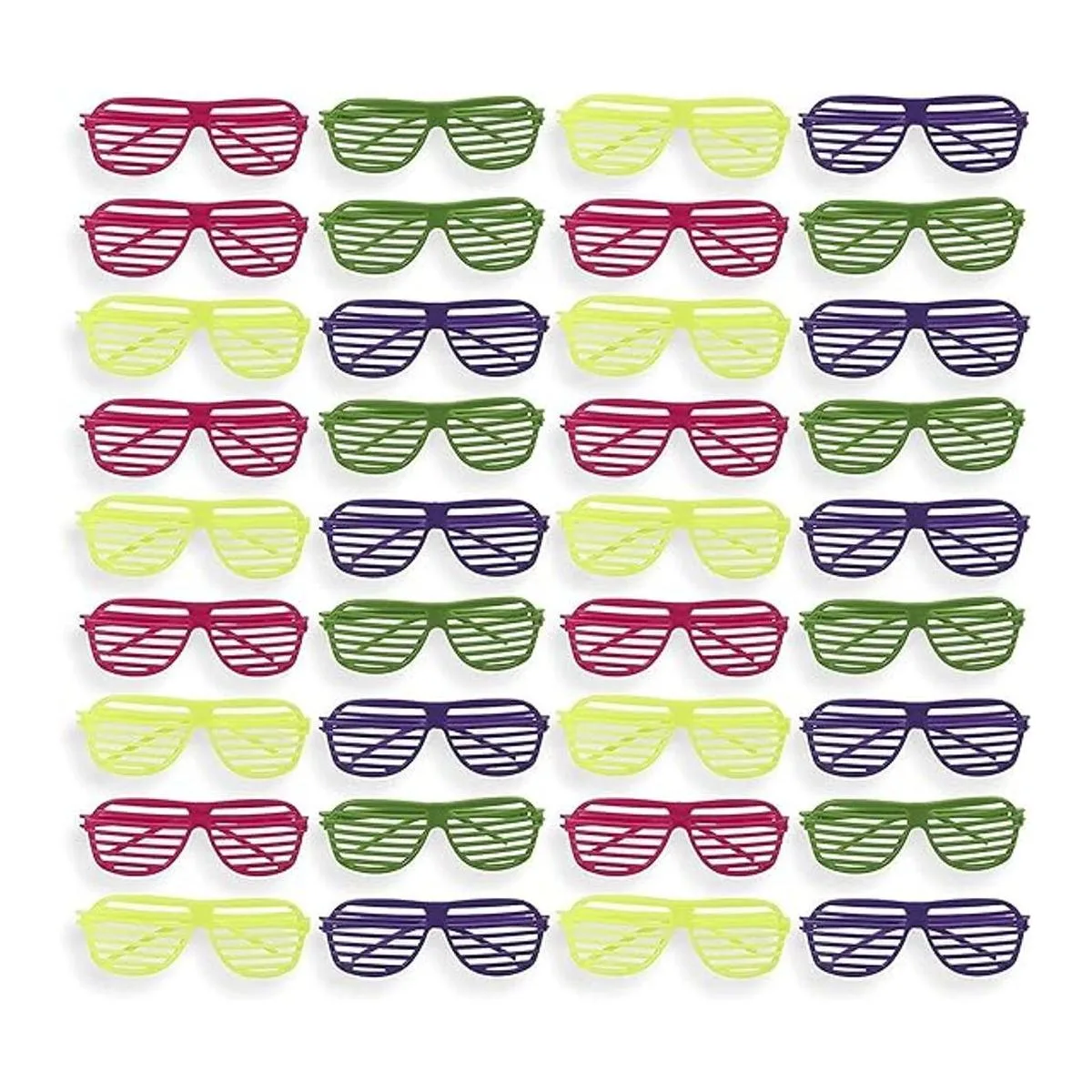 Gafas de sol para fiesta, paquete de 36 sombras ranuradas de plástico de color neón de los años 80, suministros para fiestas, accesorios para gafas en amarillo, morado, rosa, verde