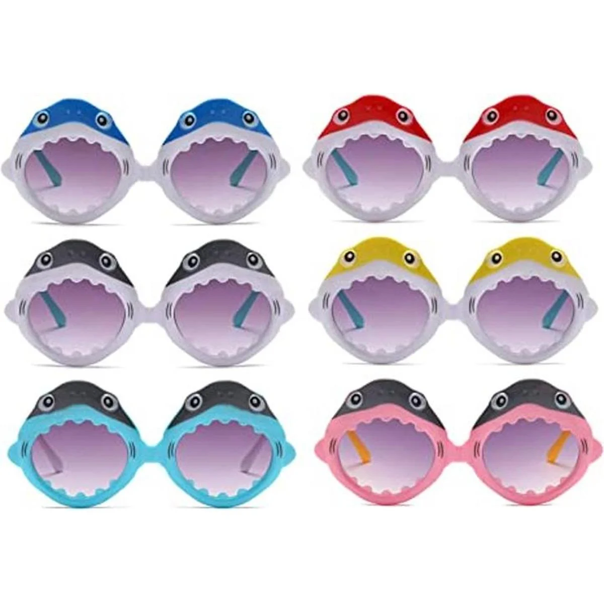 6 pares: gafas de sol de tiburón de diferentes colores para niños de 2 a 9 años se pueden llevar fácilmente para diversión o cualquier tipo de excursión